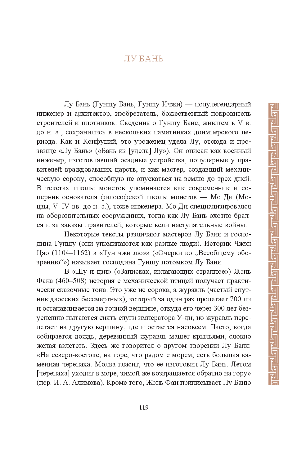 Читатель познакомится с представлениями о небесных обитателях, духах местности, а также о демонах, домашних божествах и других персонажах – от бога-защитника и подателя богатства Гуань-ди и хозяйки сада с персиками бессмертия Си-ван-му до страшной птицы гухо и безобразного громового беса лэй-гуя. Издание адресовано исследователям и студентам, интересующимся историей и мифологией, равно как и широкому кругу читателей.