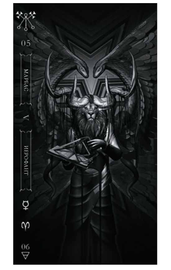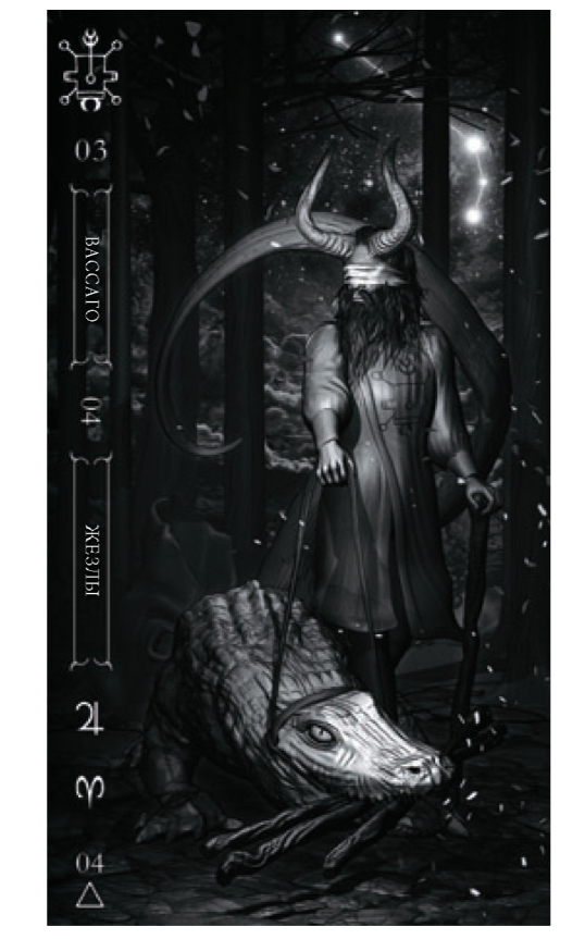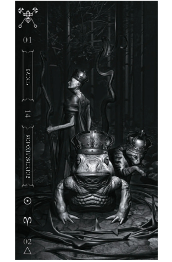 Гоетия – это магическая средневековая традиция вызывания демонов и создания талисманов. Персонажи новой колоды Фабио Листрани взяты автором из Малого Ключа Соломона, но рассматриваются в современном психологическом ключе. Поскольку тьма есть ни что иное, как путь к свету, то и бессознательное есть лишь зеркало сознательного.