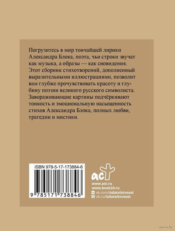 Погрузитесь в мир тончайшей лирики Александра Блока, поэта, чьи строки звучат как музыка, а образы – как сновидения. Этот сборник стихотворений, дополненный выразительными иллюстрациями, позволит вам глубже прочувствовать красоту и глубину поэзии великого русского символиста. Завораживающие картины подчёркивают тонкость и эмоциональную насыщенность стихов Александра Блока, полных любви, трагедии и мистики.