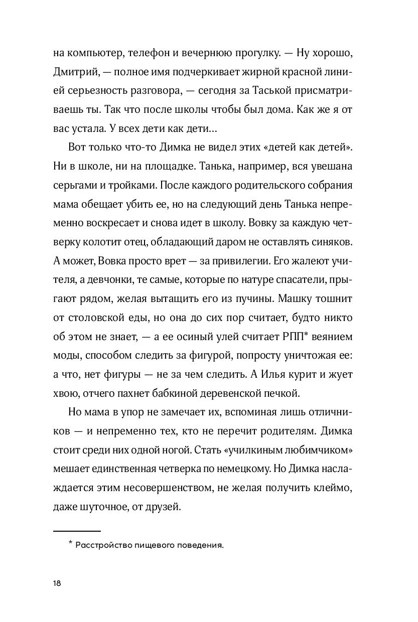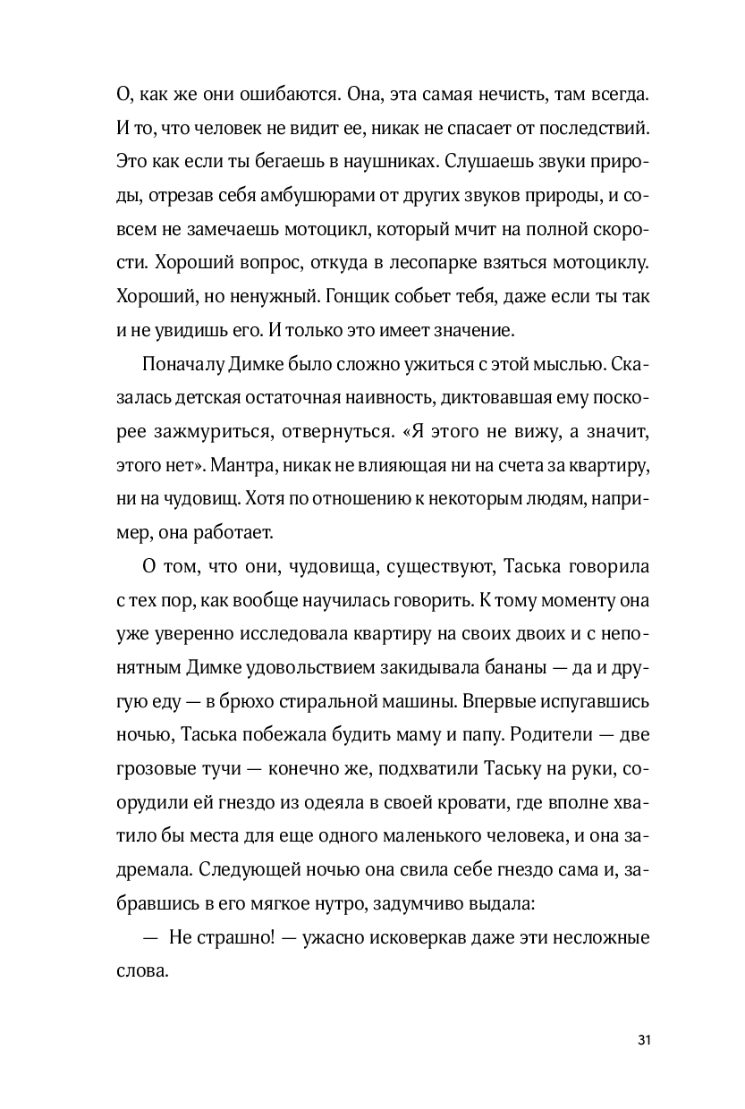 Однажды он встречает в Игре девушку-птицу по имени Ада. Димка смутно помнит ее лицо – она училась в его школе, а потом пропала без вести. Оказывается, Игра – не безобидная иллюзия. Она оплетает весь город... И чудовища более чем реальны.