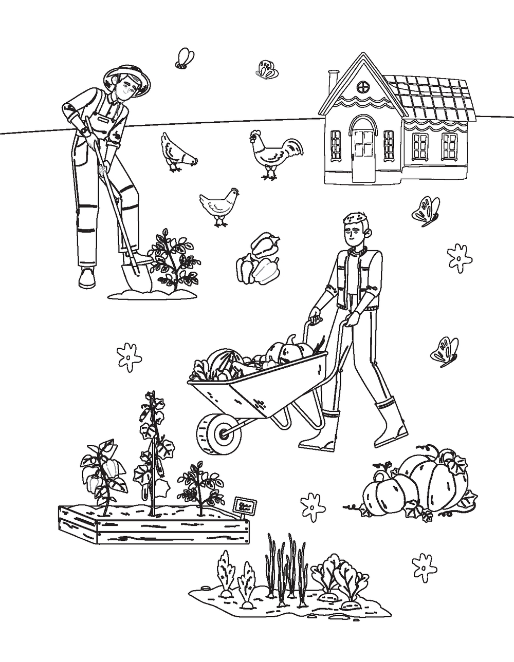 Раскраска "В деревне" подойдет всем, кто мечтает о простых радостях деревенской жизни, свежем воздухе и гармонии с природой. Каждая иллюстрация вдохновлена живописными пейзажами – зелеными полями, цветущими садами и уютными домиками, которые перенесут вас в мир безмятежности и тепла.