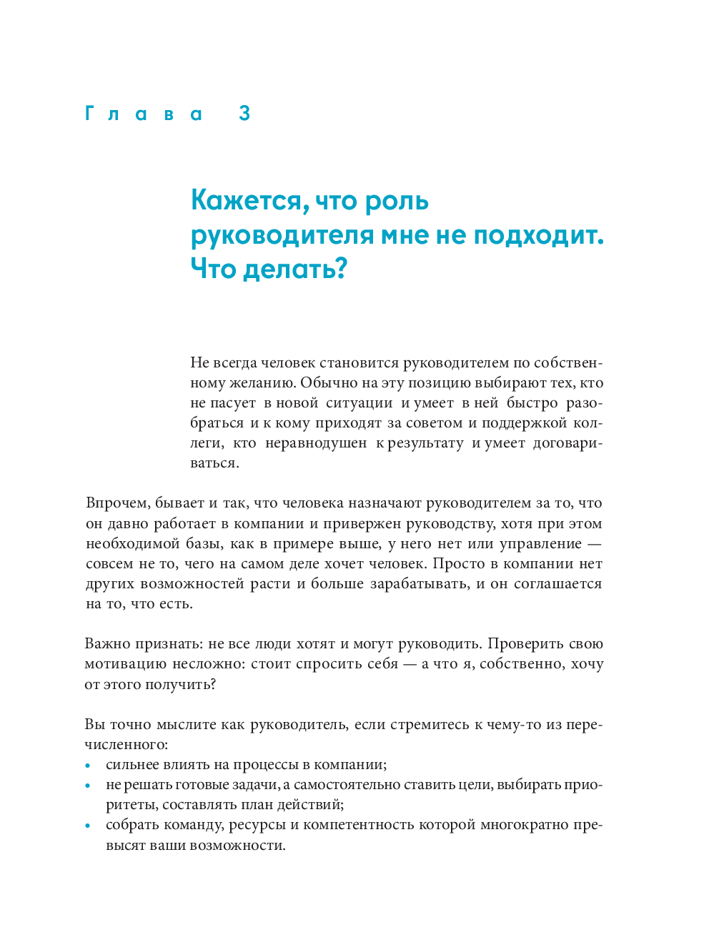 Эта книга для руководителей, не идеальных, а реальных, живых людей, которым важно получить результат в условиях ограничений. Кому приходится многое делать самому, а передать ответственность проблематично – вдруг сотрудники не справятся? Кто хочет добиться лучших показателей от команды, не становясь надсмотрщиком. Кто строит дрим тим, но не уверен в том, как мотивировать и развивать сотрудников: молодых и энергичных, зрелых и амбициозных и многое повидавших.