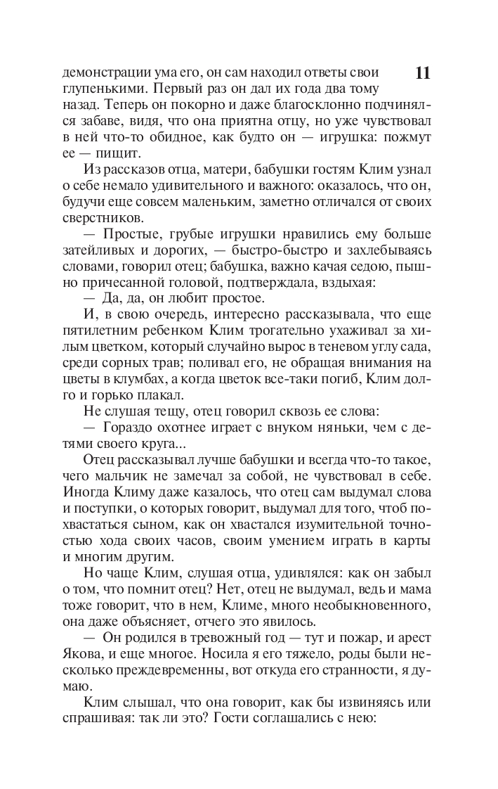 Последнее произведение автора, идея создания которого возникла вскоре после первой русской революции. Горький изначально хотел назвать его "История пустой души", и замыслил как "роман века". В нем изображена не только судьба отдельного человека на фоне исторических событий России с 1880-х годов до февраля 1918-го, но и духовная жизнь русской интеллигенции, а также тема народа, способного изменить ход истории. Вокруг романа до сих пор ведутся споры – считать ли его неудачей автора или, напротив, одной из главных русских книг ХХ века? Творение Горького, из которого "ушла в народ" крылатая фраза "А был ли мальчик?", бесспорно, сложное и до конца еще не разгаданное.