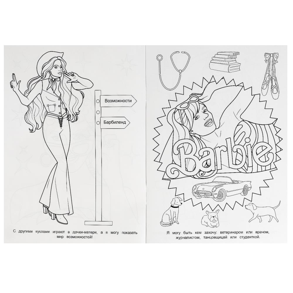 Эта увлекательная раскраска с очаровательными жителями Барбиленда непременно понравится девочке. В ней она найдёт интересные картинки с чёткими контурами и сюжетными текстами к ним. Благодаря удобному формату раскраску можно взять с собой в дорогу.