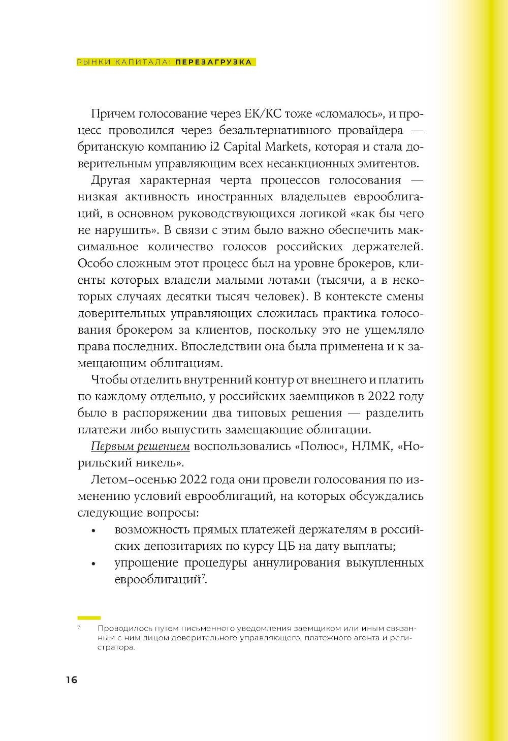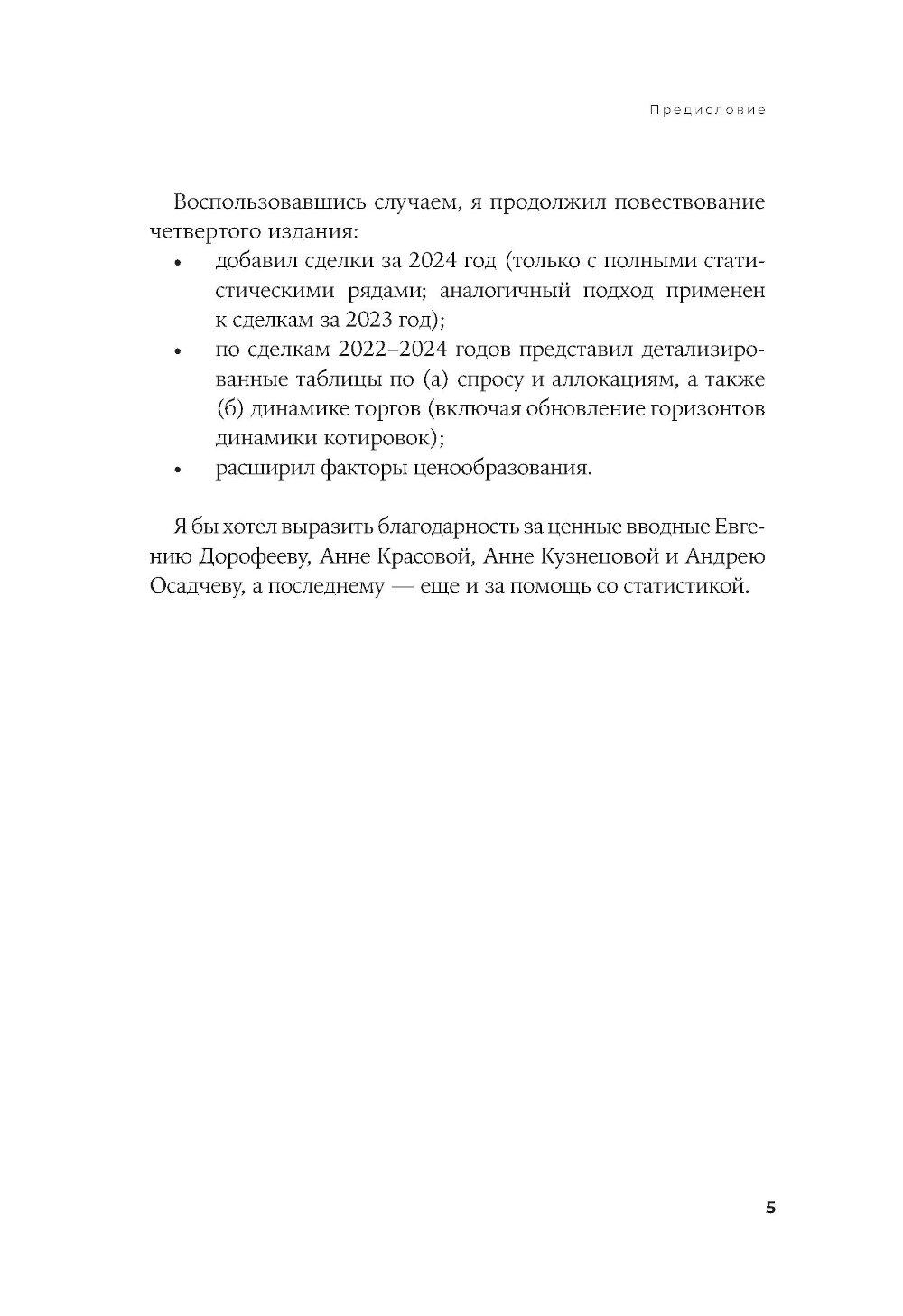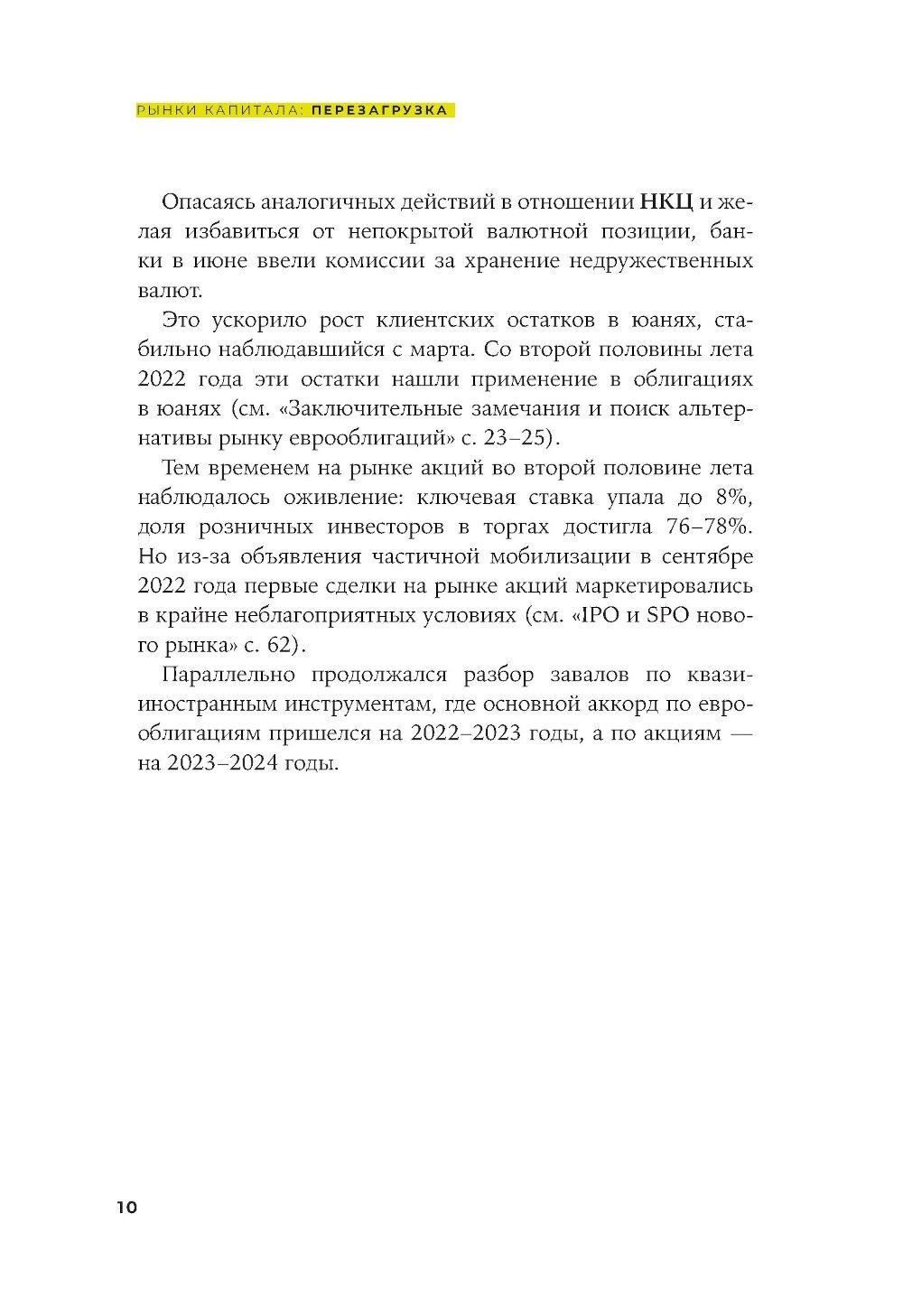 Антон Мальков уделяет значительное внимание изменениям в регулировании и последствиям этих изменений для инфраструктуры рынка, таким как демонтаж зарубежных структур и создание рынка замещающих облигаций. А также глубоко анализирует рынок IPO и SPO 2022–2024 годов, рынок еврооблигаций и альтернативные инструменты для адаптации к схлопнувшимся возможностям этого рынка.