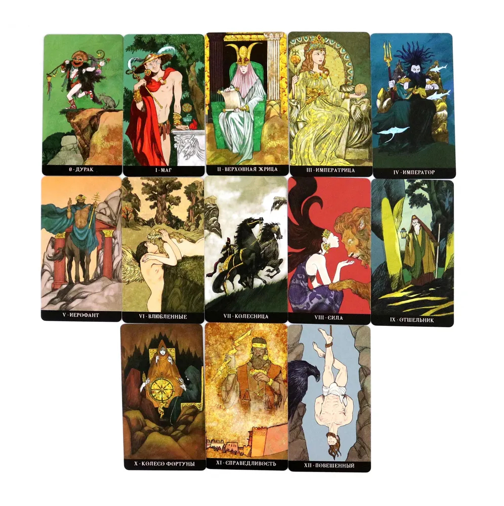 Каждая сцена переносит в дремучие леса, древние храмы и красивые пейзажи, передавая тонкие вибрации энергии. Эстетичные, красочные детальные изображения, тонкая прорисовка и четкая печать на плотном картоне делают колоду приятной на ощупь и удобной в использовании.
