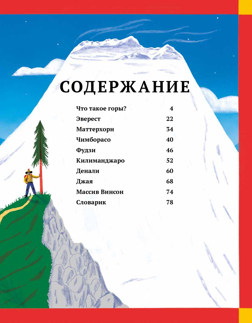 Исследуйте восемь удивительных гор мира: Эверест, Маттерхорн, Чимборасо, Фудзи, Килиманджаро, Денали, Джая и массив Винсон. Откройте для себя захватывающие истории формирования гор и легендарные истории их покорения, их уникальные экосистемы и мифологию местного населения. Каждая глава включает в себя описание лучшего маршрута к вершине и опасностей, с которыми можно столкнуться на пути.