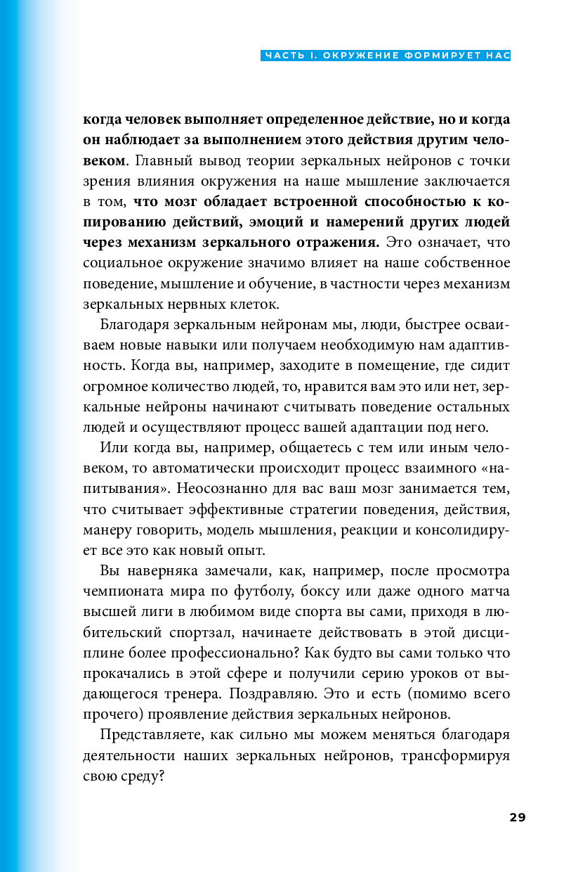 Особое внимание в книге уделено теме влияния окружения на становление личности, в том числе на развитие наших детей. Автор подчеркивает, что с возрастом влияние родителей на детей сокращается и все большее значение приобретает то, в какой среде они вращаются.