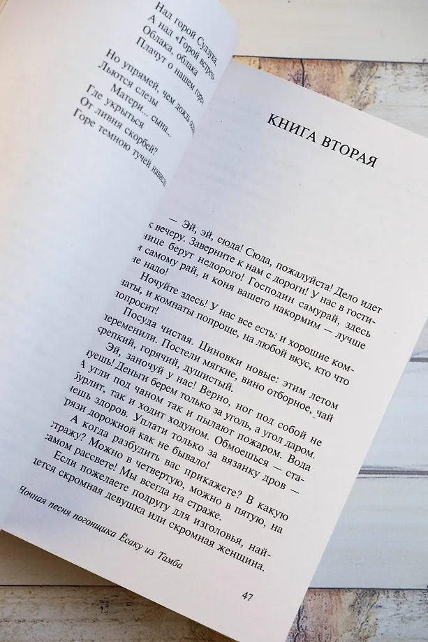 В данное издание вошли также пьесы "Ночная песня погонщика Ёсаку из Тамба" и "Масляный ад". Все три произведения публикуются в переводе знаменитого филолога и исследователя японской литературы Веры Николаевны Марковой.