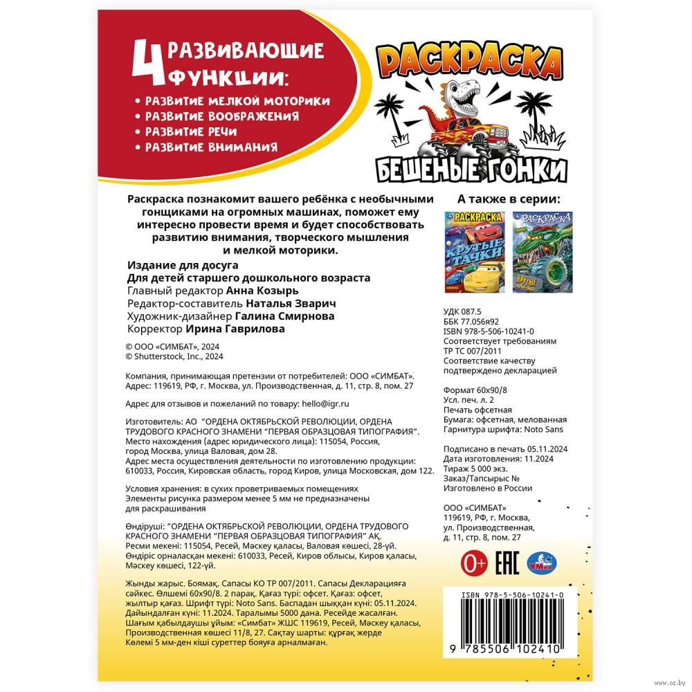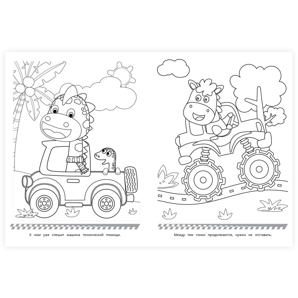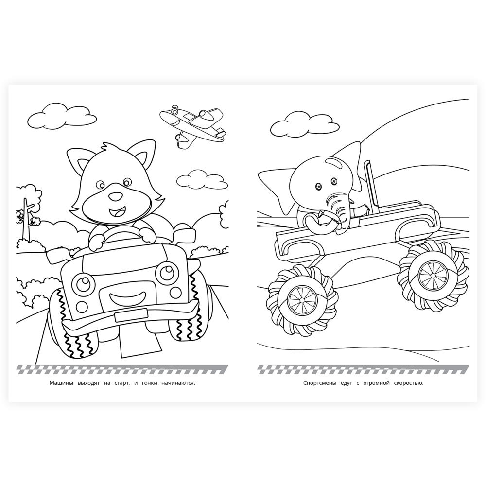 Эта увлекательная раскраска с крутыми и мощными гоночными машинами непременно понравится мальчику. В ней он найдёт интересные картинки с чёткими контурами и сюжетными текстами к ним. Благодаря удобному формату раскраску можно взять с собой в дорогу.
