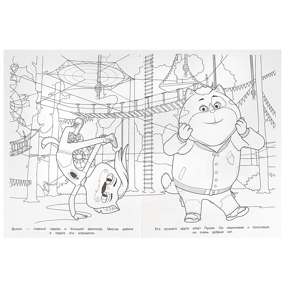 Эта увлекательная раскраска о приключениях героев популярного мультфильма непременно понравится вашему ребёнку. В ней он найдёт интересные картинки с чёткими контурами и сюжетными текстами к ним. Благодаря удобному формату раскраску можно взять с собой в дорогу.