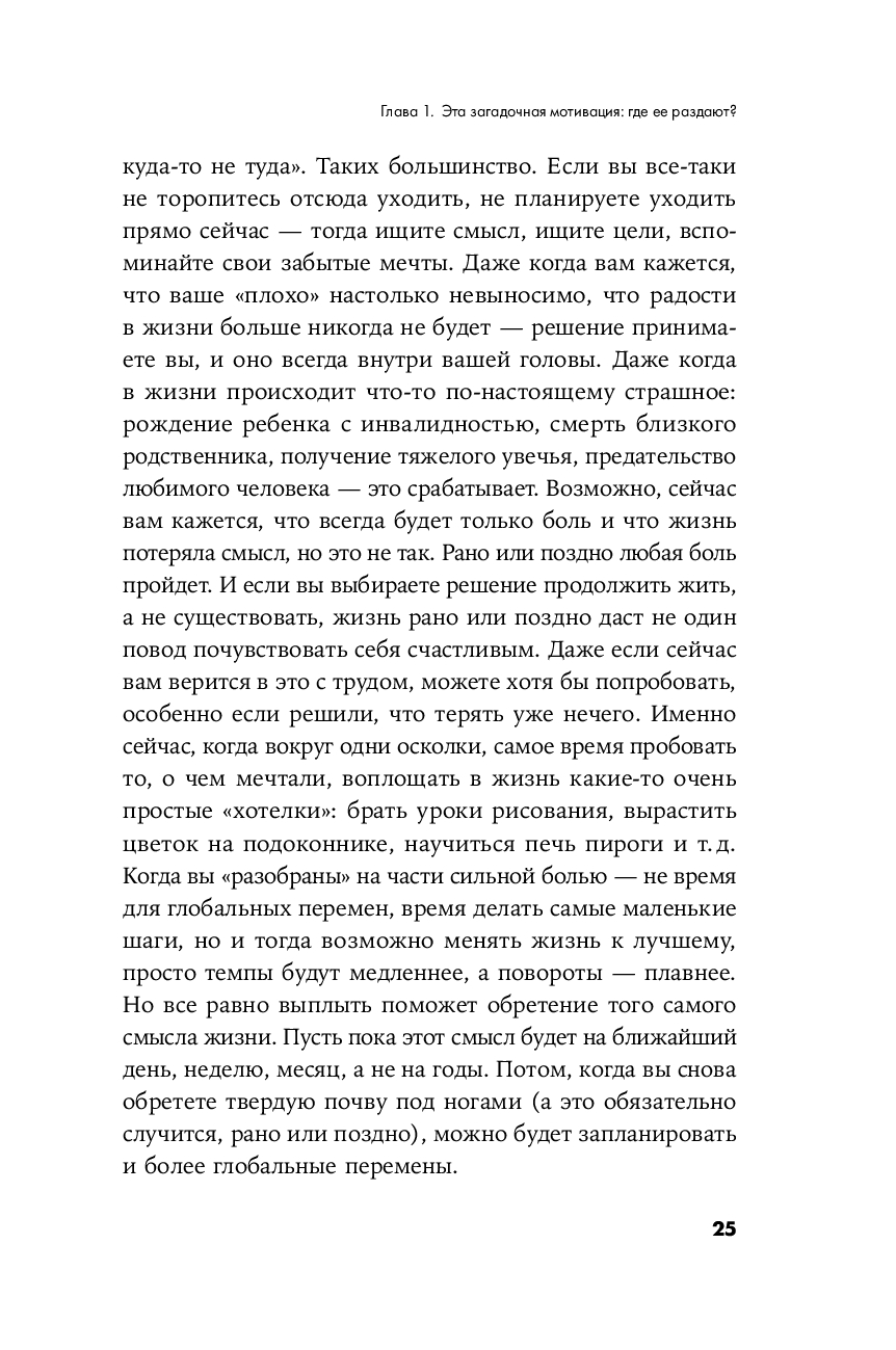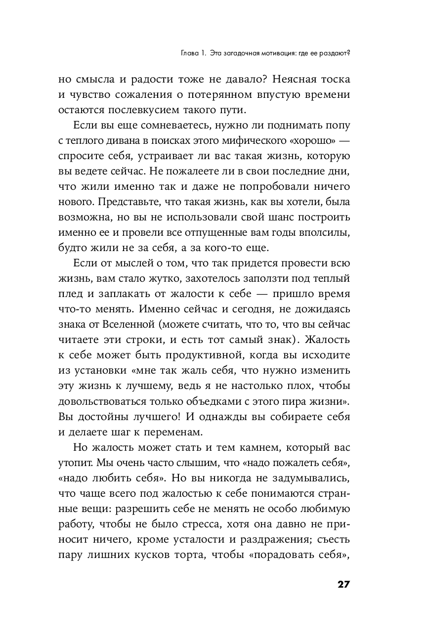 Эта книга не о том, как заработать миллион, моментально достичь процветания в бизнесе и очаровать всех людей на пару километров вокруг. Она о том, как понять, чего вы хотите на самом деле, и разрешить себе стремиться к цели, пусть даже другие крутят пальцем у виска. Ее автор, психолог-консультант Наталья Керре, поможет вам понять и полюбить самих себя – настоящих, без навязанных обществом масок. Она пишет о том, что останавливаться необязательно в любом возрасте, а делать всегда по-своему – добродетель, ведущая напрямик к счастью. Если вы хотите выбраться из состояния "всё хорошо, но ничего хорошего" и сделать свою жизнь такой, какую раньше не могли даже вообразить, скорее переворачивайте страницу и читайте.