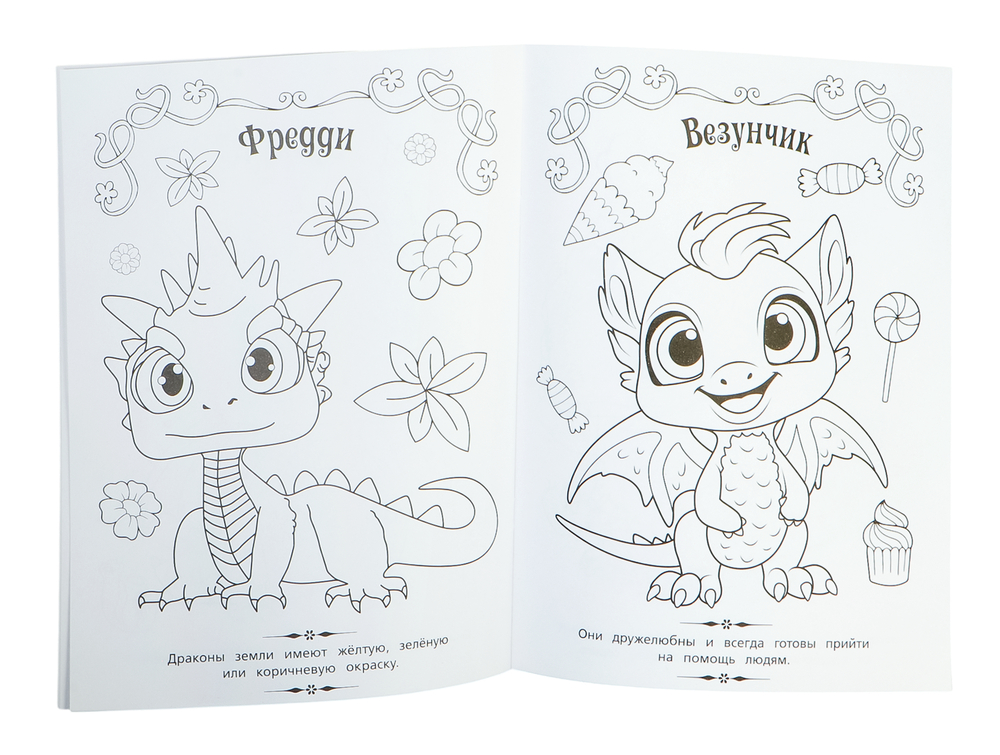 Эта увлекательная раскраска познакомит ребёнка с забавными дракончиками. Раскрашивая картинки с чёткими контурами, он приятно проведёт время, потренирует руку к письму и узнает много нового про удивительный мир драконов. Благодаря удобному формату раскраску можно взять с собой в дорогу.
