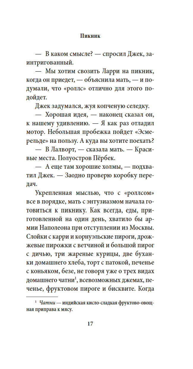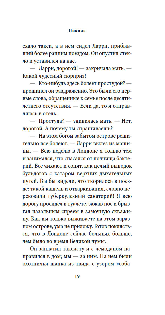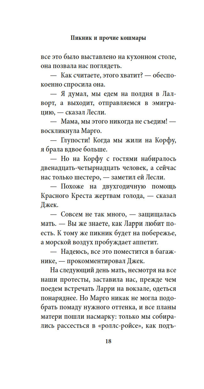 "Пикник и прочие кошмары" – это продолжение романов "Моя семья и другие звери" – "книги, завораживающей в буквальном смысле слова" (Sunday Times) и "самой восхитительной идиллии, какую только можно вообразить" (The New Yorker), – "Птицы, звери и родственники" и "Сад богов", а также сборника рассказов "Праздники, звери и прочие несуразности". С неизменной любовью и неподражаемым юмором Даррелл рассказывает о пребывании своей семьи (в том числе старшего брата Ларри, то есть Лоренса Даррелла – будущего автора знаменитого "Александрийского квартета") на греческом острове Корфу и об их дальнейших приключениях, демонстрируя самую широкую палитру писательского мастерства вплоть до готической истории о призраках. Эти романы и сборники разошлись по миру многомиллионными тиражами, стали настольными книгами уже у нескольких поколений читателей, а в Англии даже вошли в школьную программу. "Трилогия о Корфу" (с течением времени разросшаяся до шести книг) трижды переносилась на телеэкран, причем последний раз – в 2016–2019 годах, когда британская компания ITV выпустила сериал "Дарреллы", одним из постановщиков которого выступил Эдвард Холл ("Аббатство Даунтон", "Мисс Марпл Агаты Кристи").