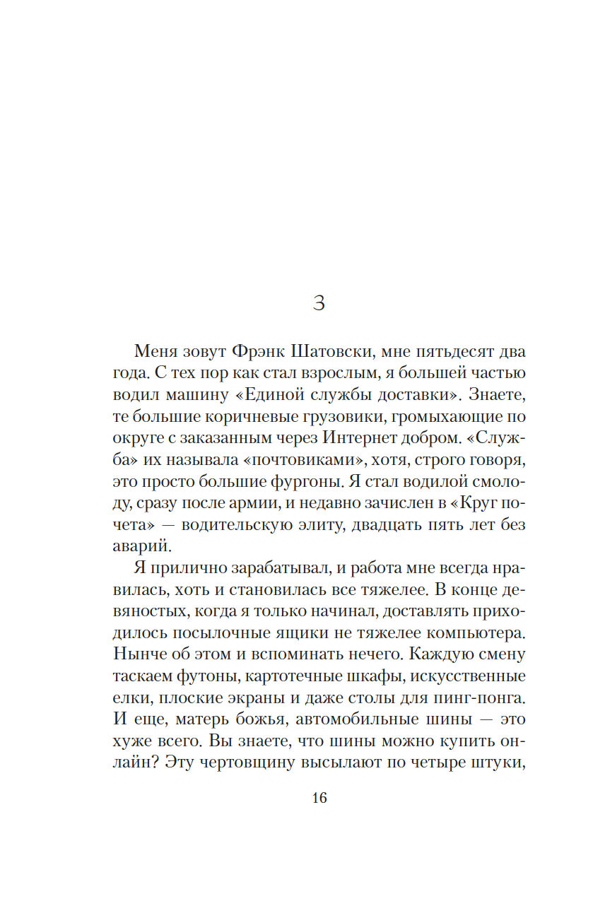 В захолустном городке Фрэнк Шатовски добросовестно трудится водителем службы доставки и только себя винит в разрыве с дочерью, которая теперь живет в Бостоне.