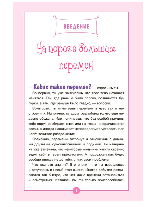 Переходный возраст – особо значимый период в жизни каждого. Вступая в него, очень важно черпать информацию из проверенных источников. То, что ты слышишь от ребят во дворе и модных блогеров, не всегда соответствует действительности. "Книга о девочках и для девочек" – признанный бестселлер и надежный путеводитель в вопросах взросления.
