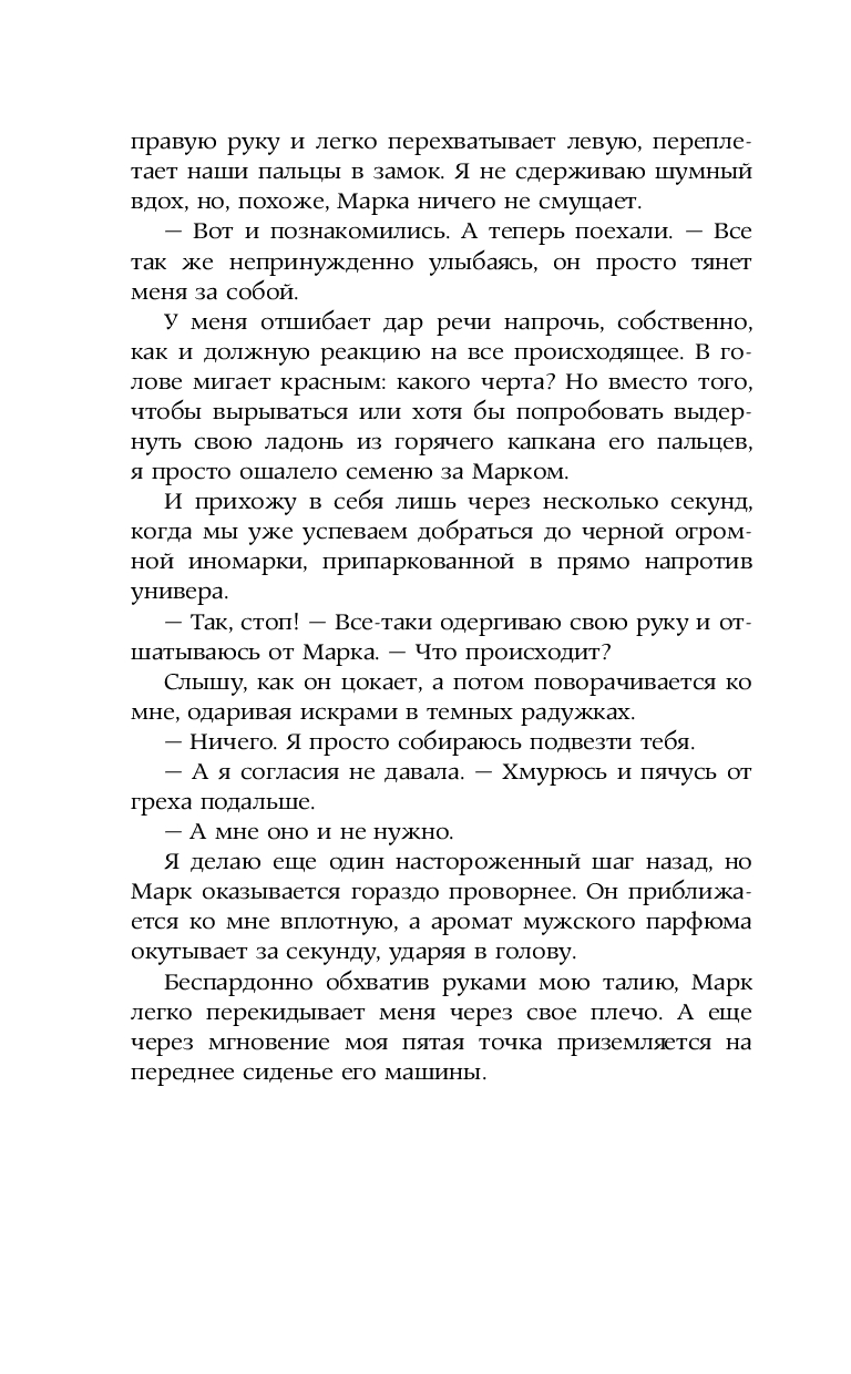Он обаятельный и привлекательный наглец с золотой кредиткой в кармане. По Марку Громову выплакан целый океан девичьих слез нашего университета. Я и Он – параллельные прямые, которые никогда не должны были пересечься. Но мы пересечемся трижды. Первый раз Марк просто решит похитить меня средь бела дня. Второй раз – той самой ночью, навсегда разбившей мне сердце. А третий – когда его и моя жизни станут двумя полосками теста на беременность.