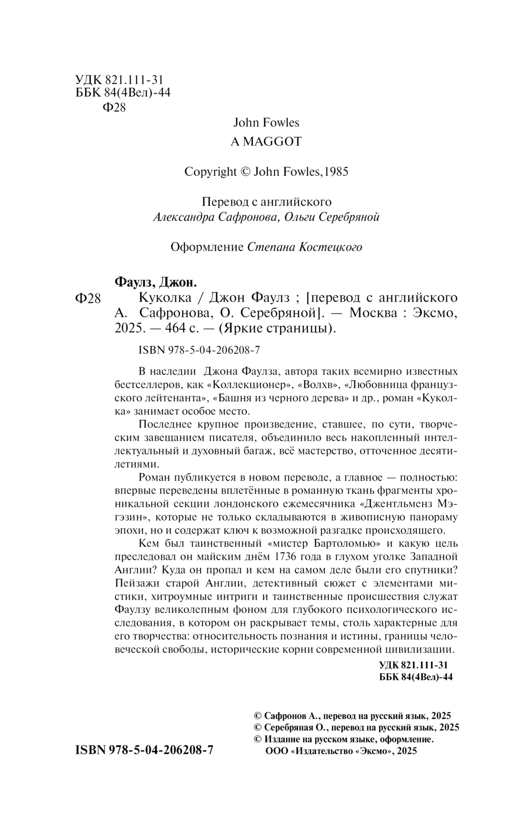 В наследии современного классика Джона Фаулза – возможно, величайшего британского писателя XX века – роман "Куколка" занимает особое место, являясь по сути его творческим завещанием. В свое последнее крупное произведение автор всемирно известных бестселлеров "Коллекционер", "Волхв", "Любовница французского лейтенанта", "Дэниел Мартин" и "Башня из черного дерева" вложил весь накопленный интеллектуальный и духовный багаж, все отточенное десятилетиями мастерство.