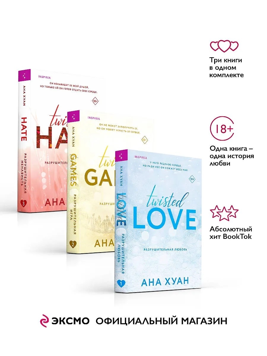 В комплект входят три книги цикла Аны Хуан "Twisted", который рассказывает о подругах, каждая из которых обретает любовь. Одна книга – одна история любви.