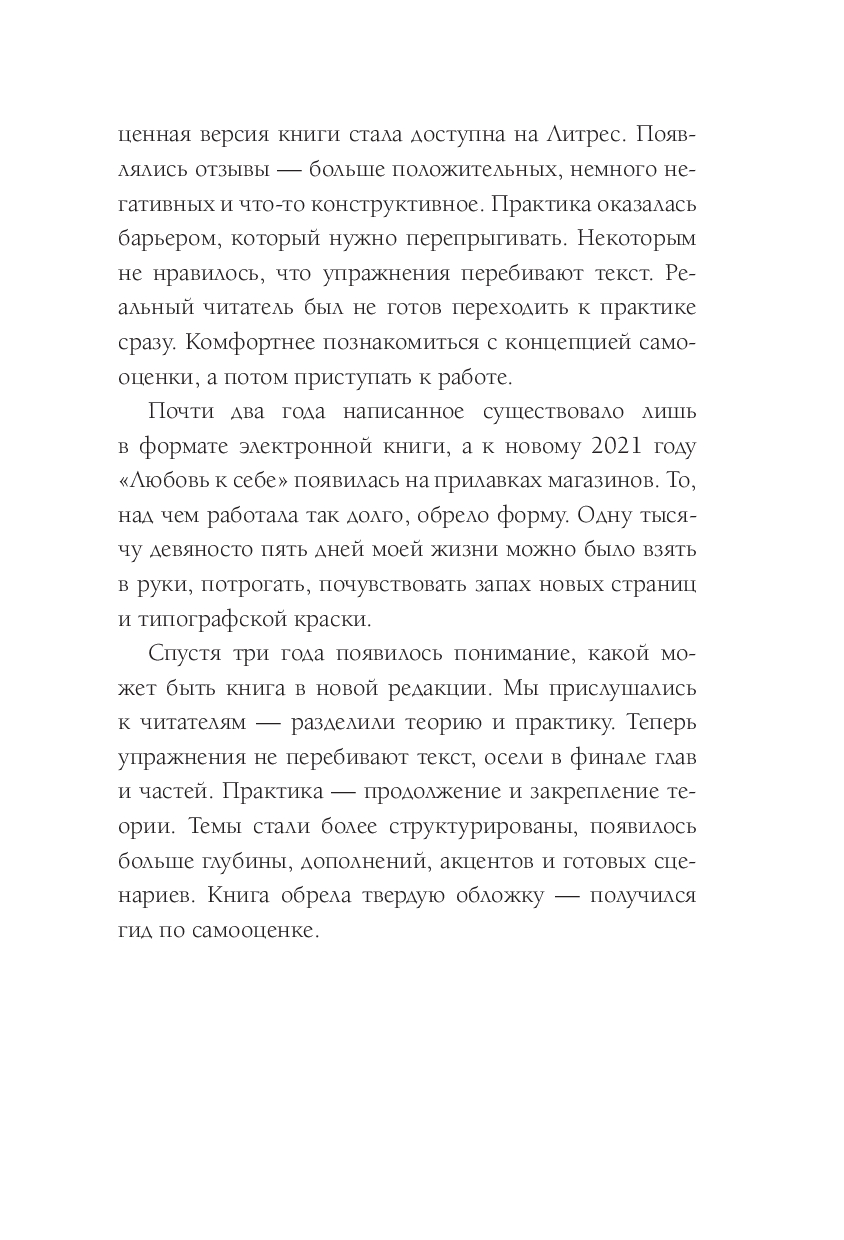 В современном мире, где конкуренция и давление общества – неотъемлемая часть жизни, умение любить и принимать себя становится особенно ценным. Обновленное издание популярного бестселлера предлагает полезные инструменты, которые находят глубокий отклик в сердцах людей по всему миру. Также вы найдете специальные QR-коды, в которых озвучены практические упражнения.