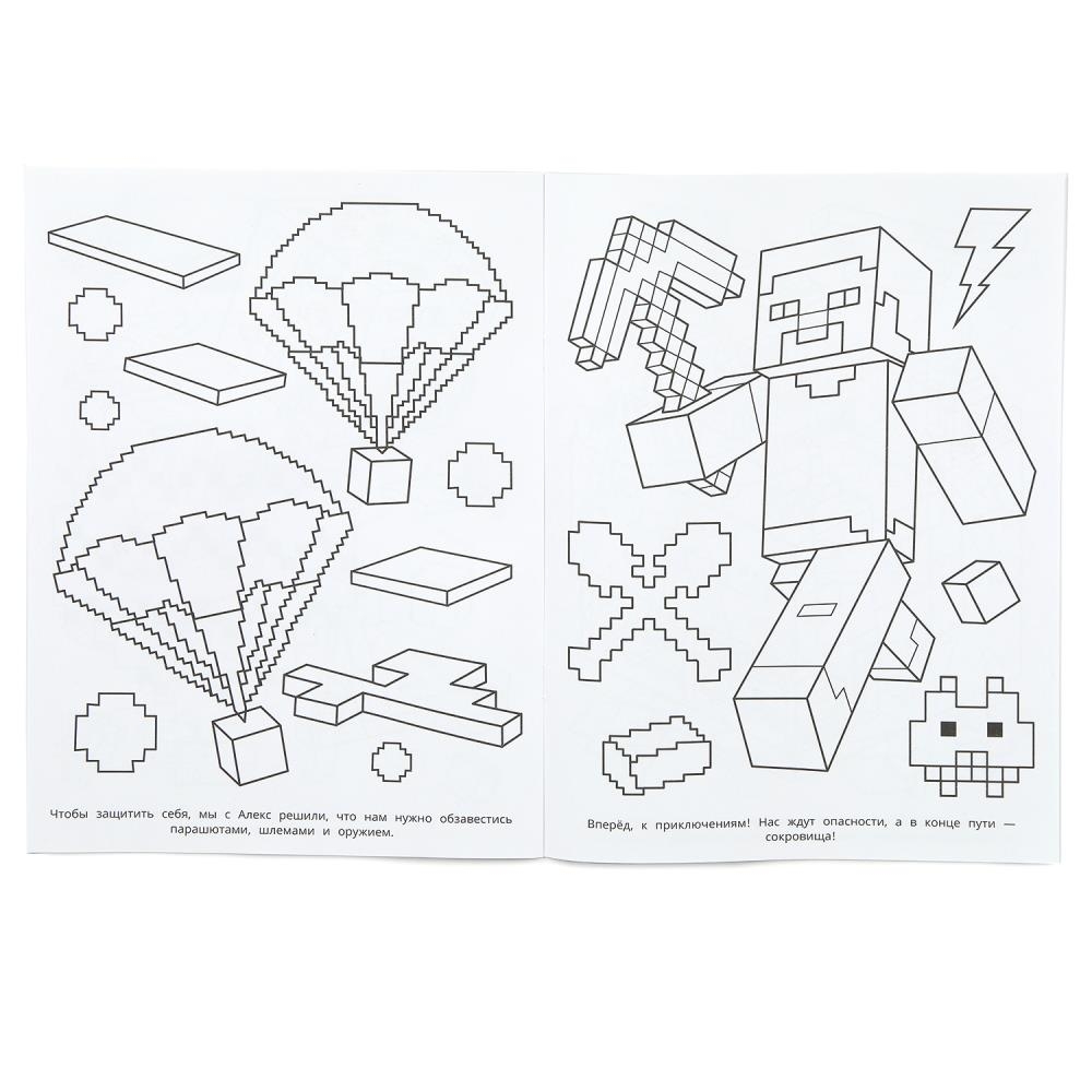 Эта увлекательная раскраска с героями в стиле популярной компьютерной игры непременно понравится вашему ребёнку. В ней он найдёт интересные картинки с чёткими контурами и сюжетными текстами к ним. Благодаря удобному формату раскраску можно взять с собой в путешествие.