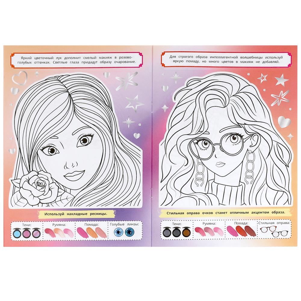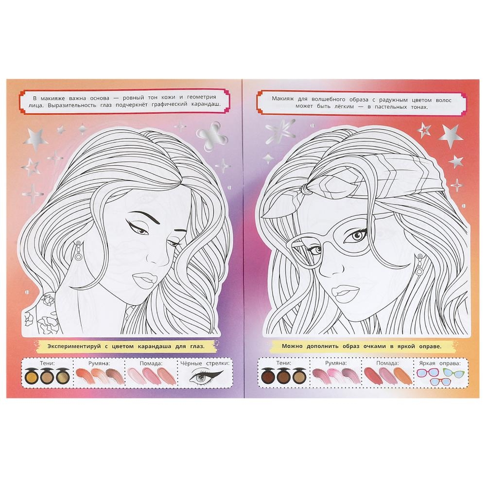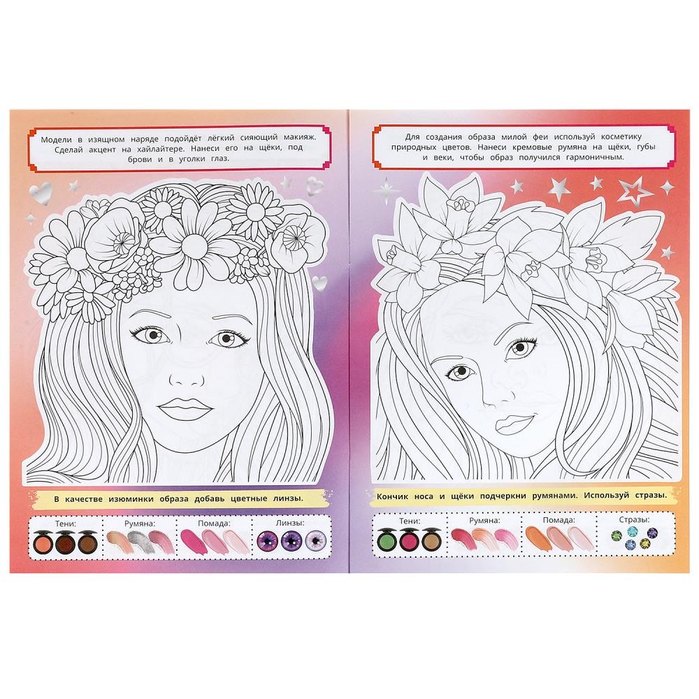 С помощью этой занимательной раскраски девочка почувствует себя настоящим визажистом и узнает секреты макияжа очаровательных девочек-моделей. Раскрашивание крупных чётких контуров не только дополнит досуг, но и поможет развить фантазию и мелкую моторику. Благодаря удобному формату раскраску можно взять с собой в дорогу.