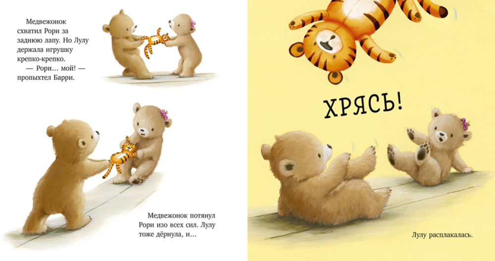 Медвежатам Лулу и Барри весело играть! Но только до тех пор, пока Лулу не берет в свои пушистые лапки любимую игрушку друга – тигра Рори. Барри не хочет делиться, а Лулу не хочет уступать. Неужели веселым играм конец? Хорошо, что мама-медведица знает, как все исправить!