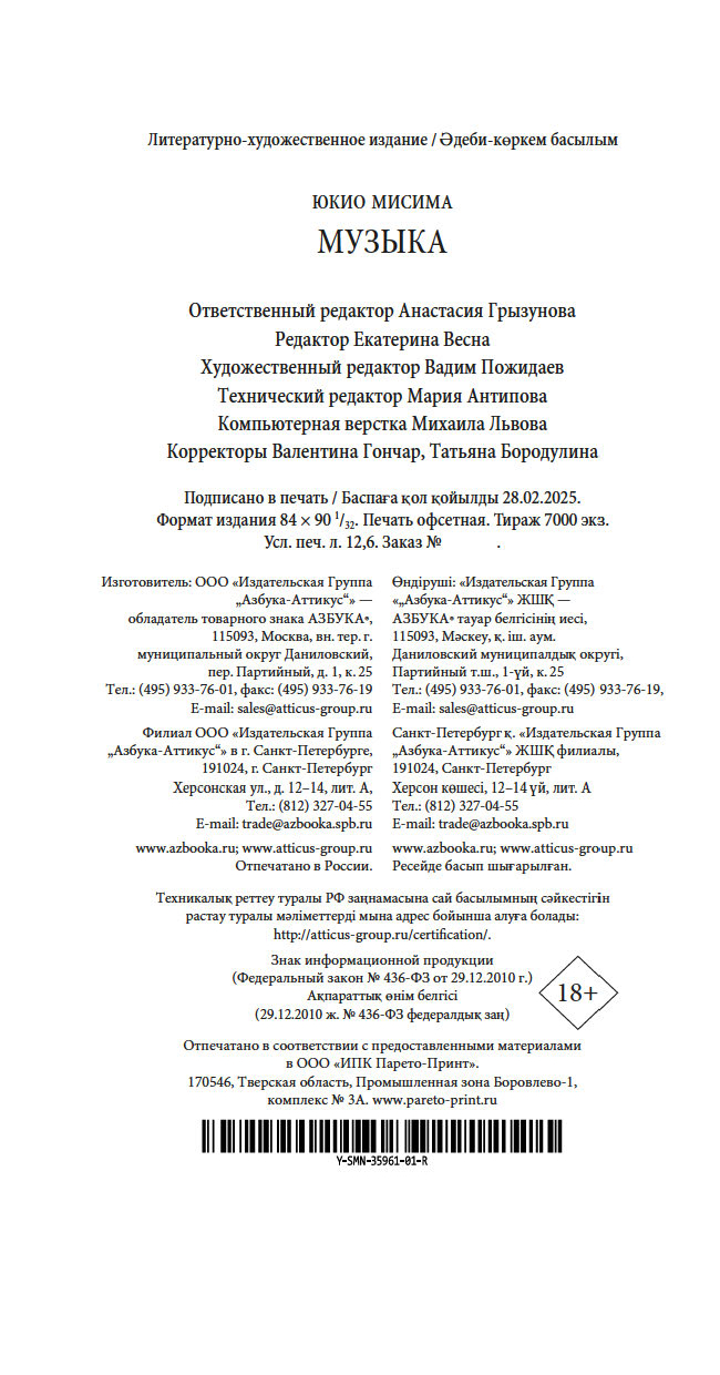 | Изготовитель | ООО "Издательство "Иностранка". 109017, РФ, г. Москва, ул. Пятницкая, 41 |