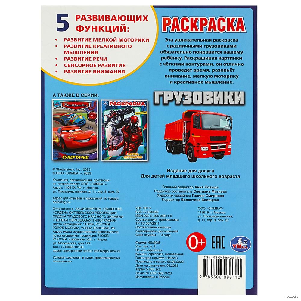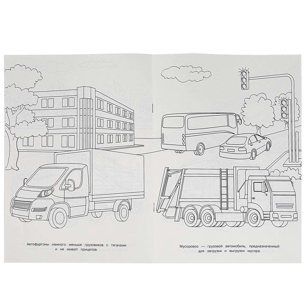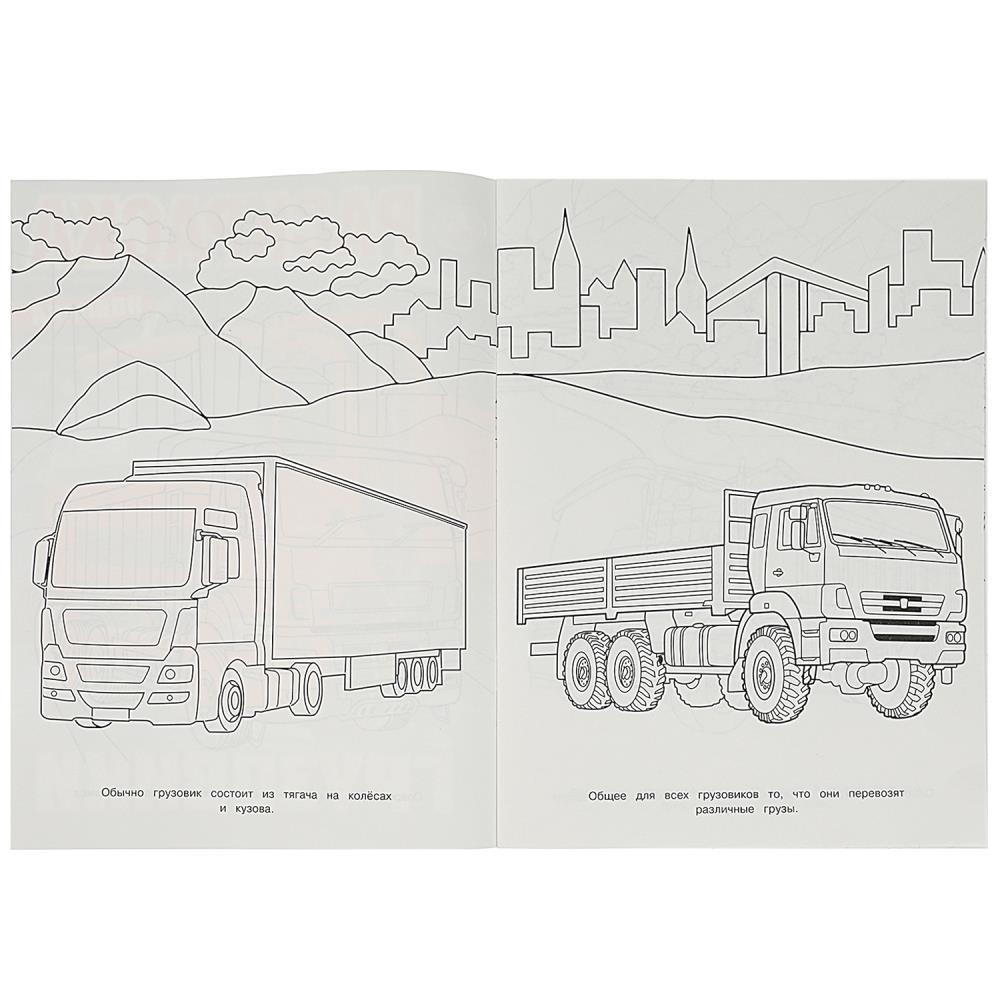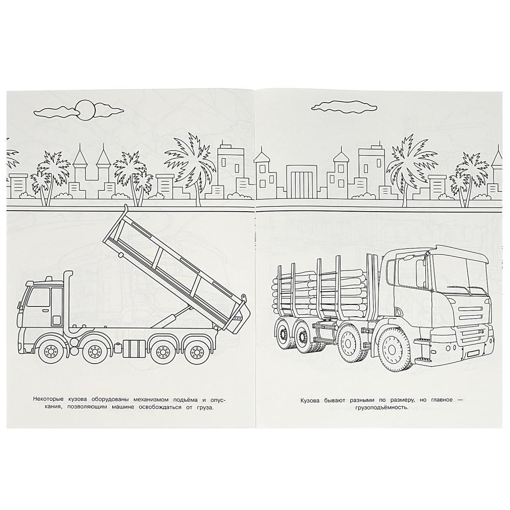 Эта увлекательная раскраска с разными видами грузовиков непременно понравится вашему ребёнку. В ней он найдёт интересные картинки с чёткими контурами и сюжетными текстами к ним. Благодаря удобному формату раскраску можно взять с собой в дорогу.
