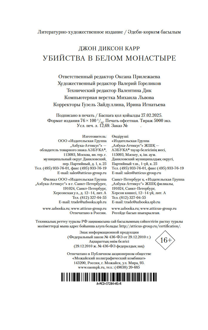 | Изготовитель | ЗАО "Азбука". 198096, РФ, г. Санкт-Петербург, ул. Решетникова, д. 15 |