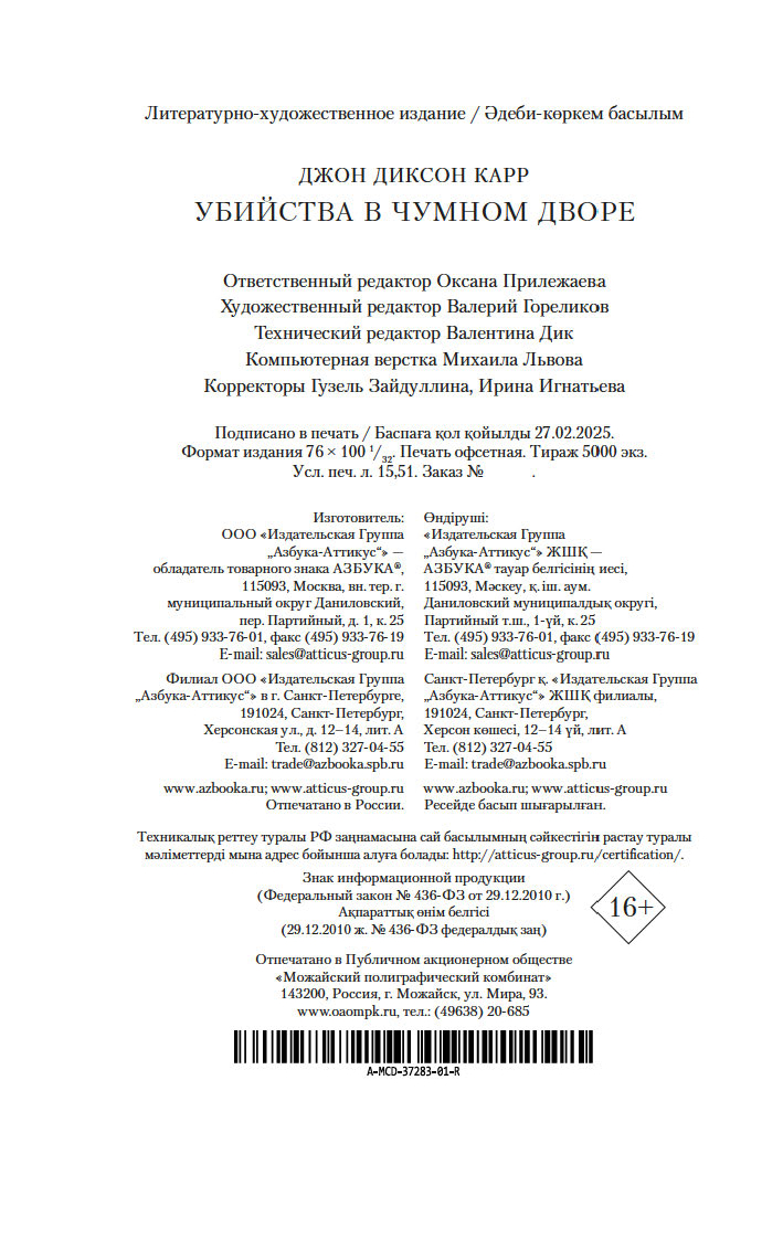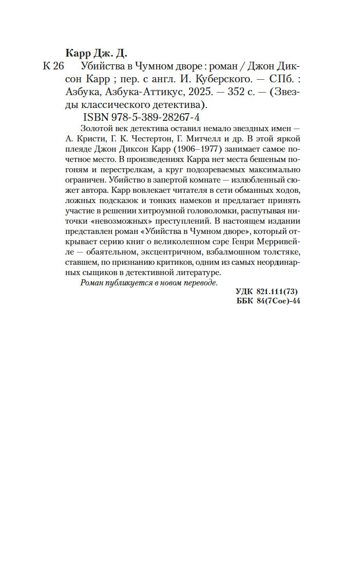 В настоящем издании представлен роман "Убийства в Чумном дворе", который открывает серию книг о великолепном сэре Генри Мерривейле – обаятельном, эксцентричном, взбалмошном толстяке, ставшем, по признанию критиков, одним из самых неординарных сыщиков в детективной литературе.