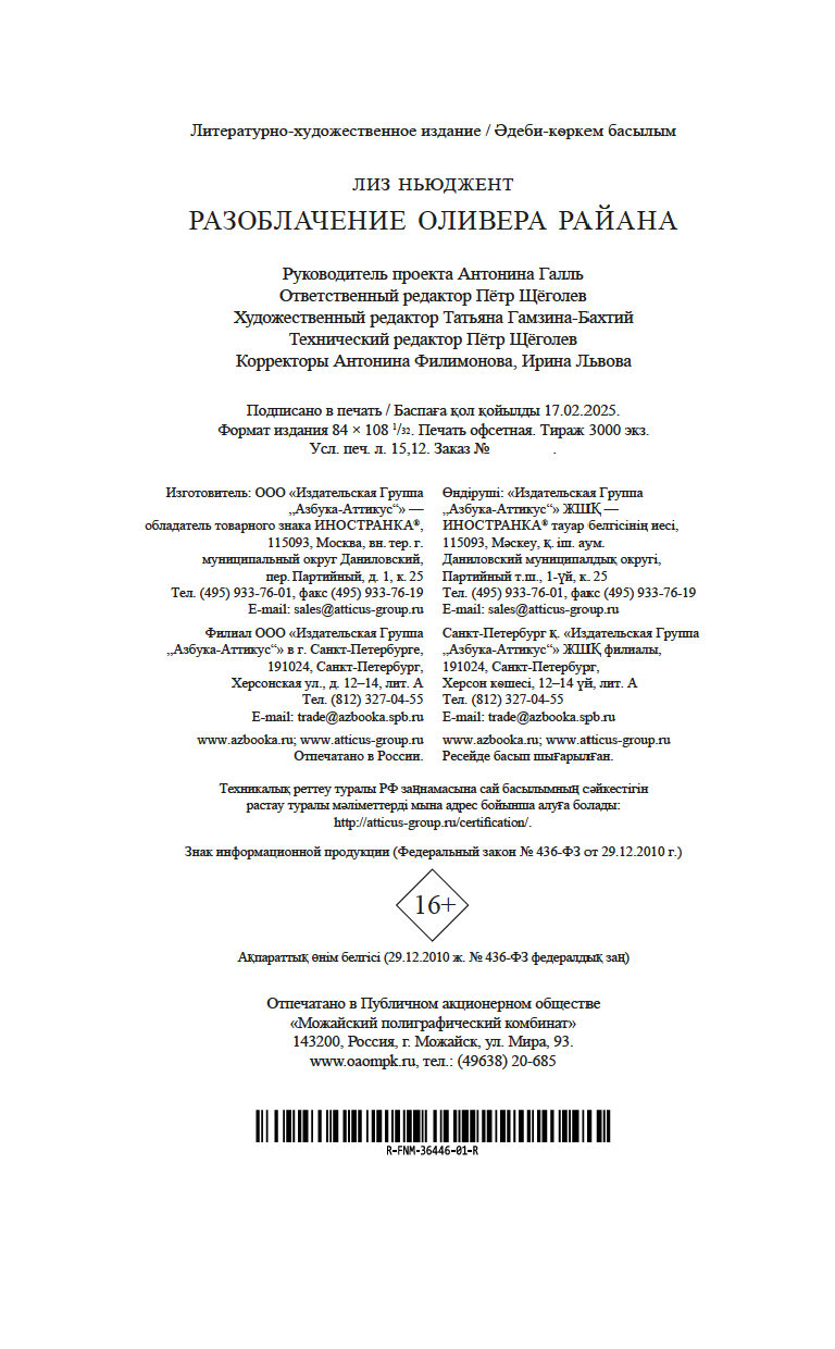 | Изготовитель | ООО "Издательство "Иностранка". 109017, РФ, г. Москва, ул. Пятницкая, 41 |