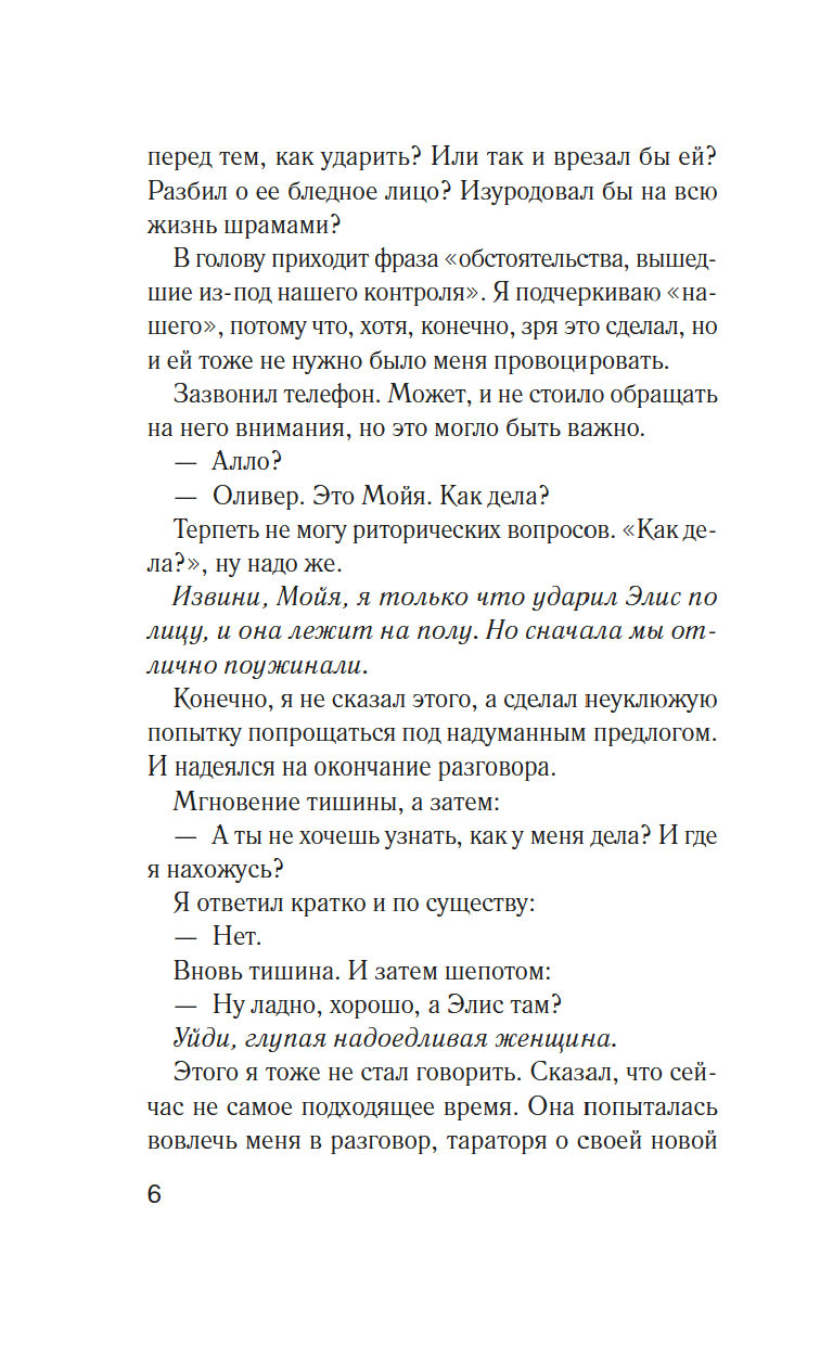 Оливер Райан – красивый, успешный, харизматичный мужчина. Он – известный детский писатель, а его жена Элис – книжный иллюстратор. Практически идеальная пара. Но однажды вечером в их семье происходит трагедия: жестокий, неожиданный всплеск агрессии со стороны мужа приводит Элис к коме… По мере того как мы погружаемся в воспоминания главных героев, их знакомых и соседей, на поверхность всплывают неизвестные подробности жизни Оливера. Слой за слоем с его образа слетает внешняя шелуха, и перед нами предстает чудовище, в душе которого живут лишь зависть, обман и презрение к людям. Что это – результат детской травмы или попытка вытеснить вину за преступление, совершенное почти сорок лет назад?