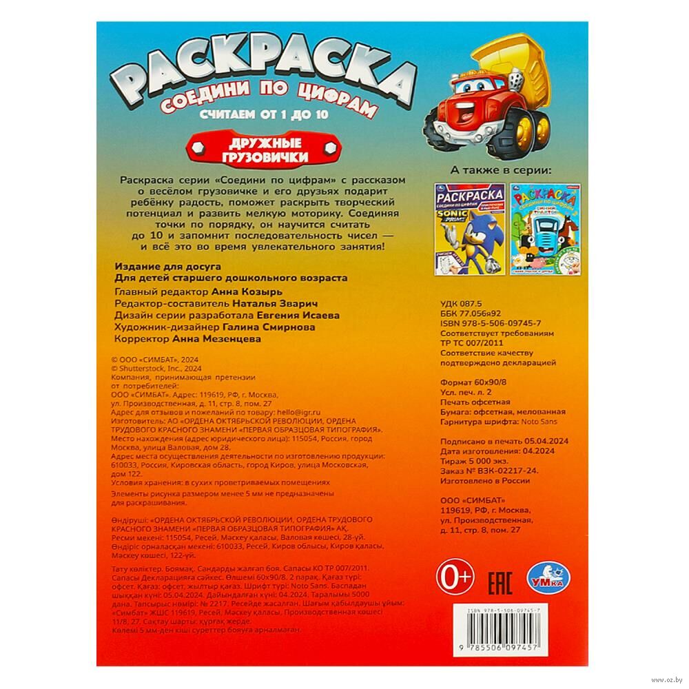 Дружные грузовички. Раскраска. Соедини по цифрам