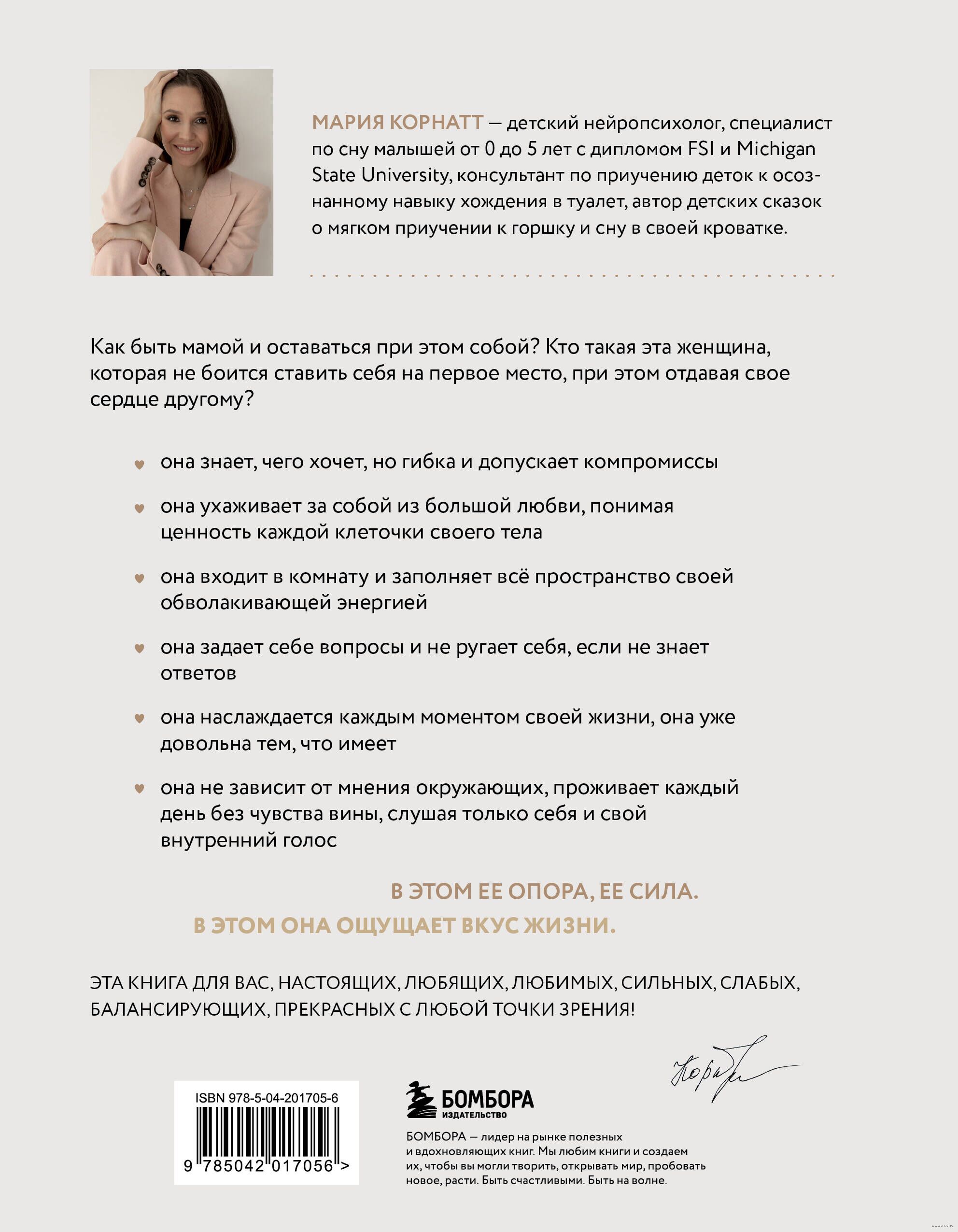 Книга от автора бестселлера в мире материнства "С любовью, мама!" написана с заботой о каждой женщине, которая оказалась на грани или уже потеряла себя настоящую. Она напомнит, как важно жить в гармонии с собой, удовлетворять свои потребности, подскажет, как совмещать множество ролей и просто быть. Покажет, что материнство может стать точкой роста, силы и развития для женщины, а не болотом в круговороте бытовых дел.