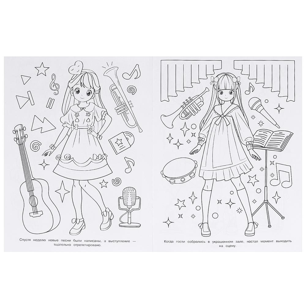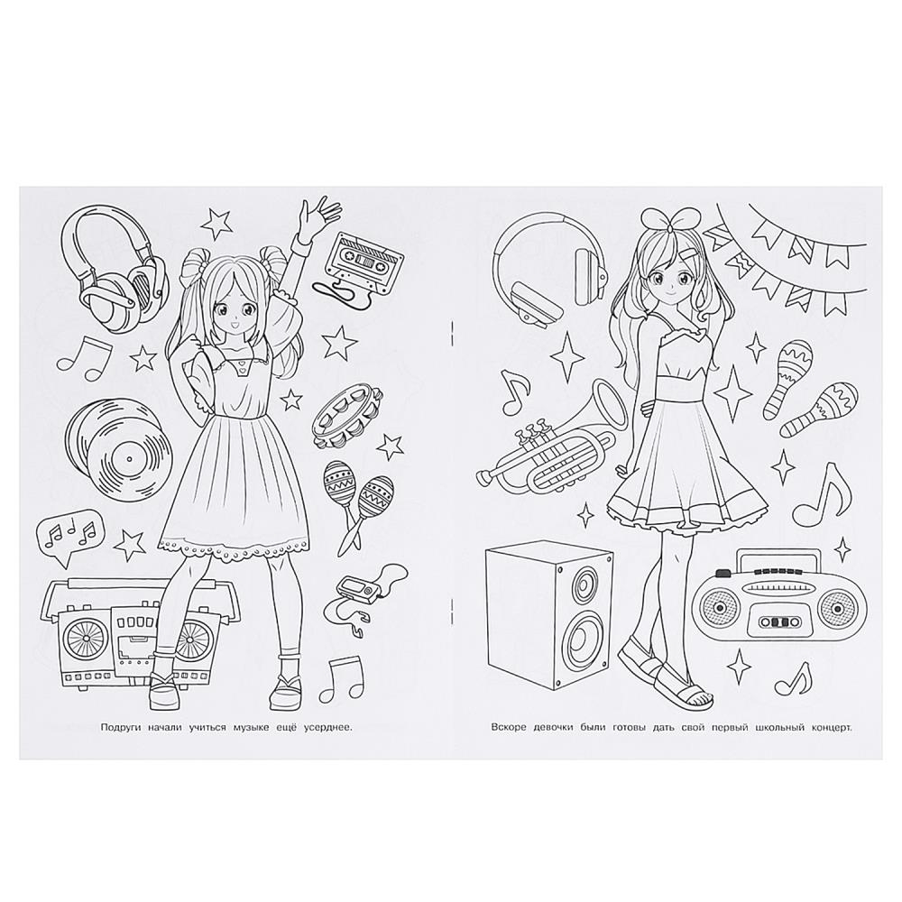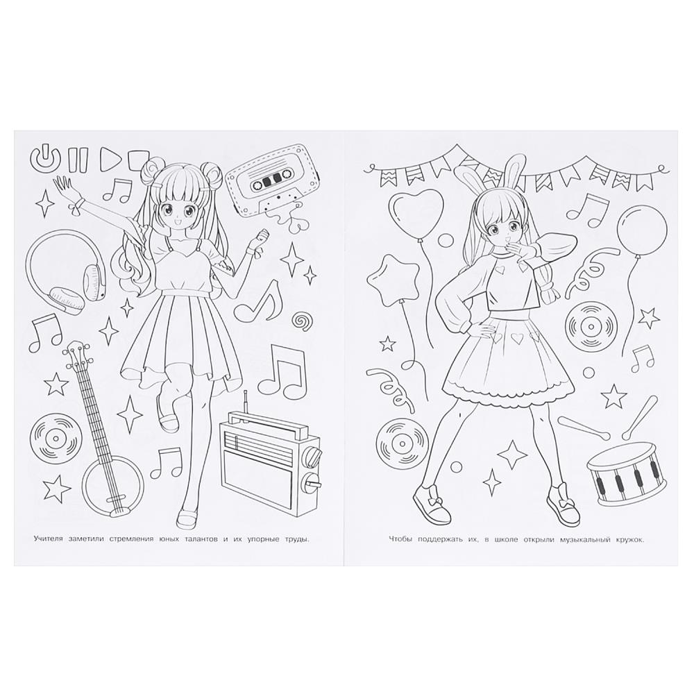 Эта увлекательная раскраска об очаровательных аниме-девочках непременно понравится вашему ребёнку. В ней девочка найдёт интересные картинки с чёткими контурами и сюжетными текстами к ним. Благодаря удобному формату раскраску можно взять с собой в дорогу.