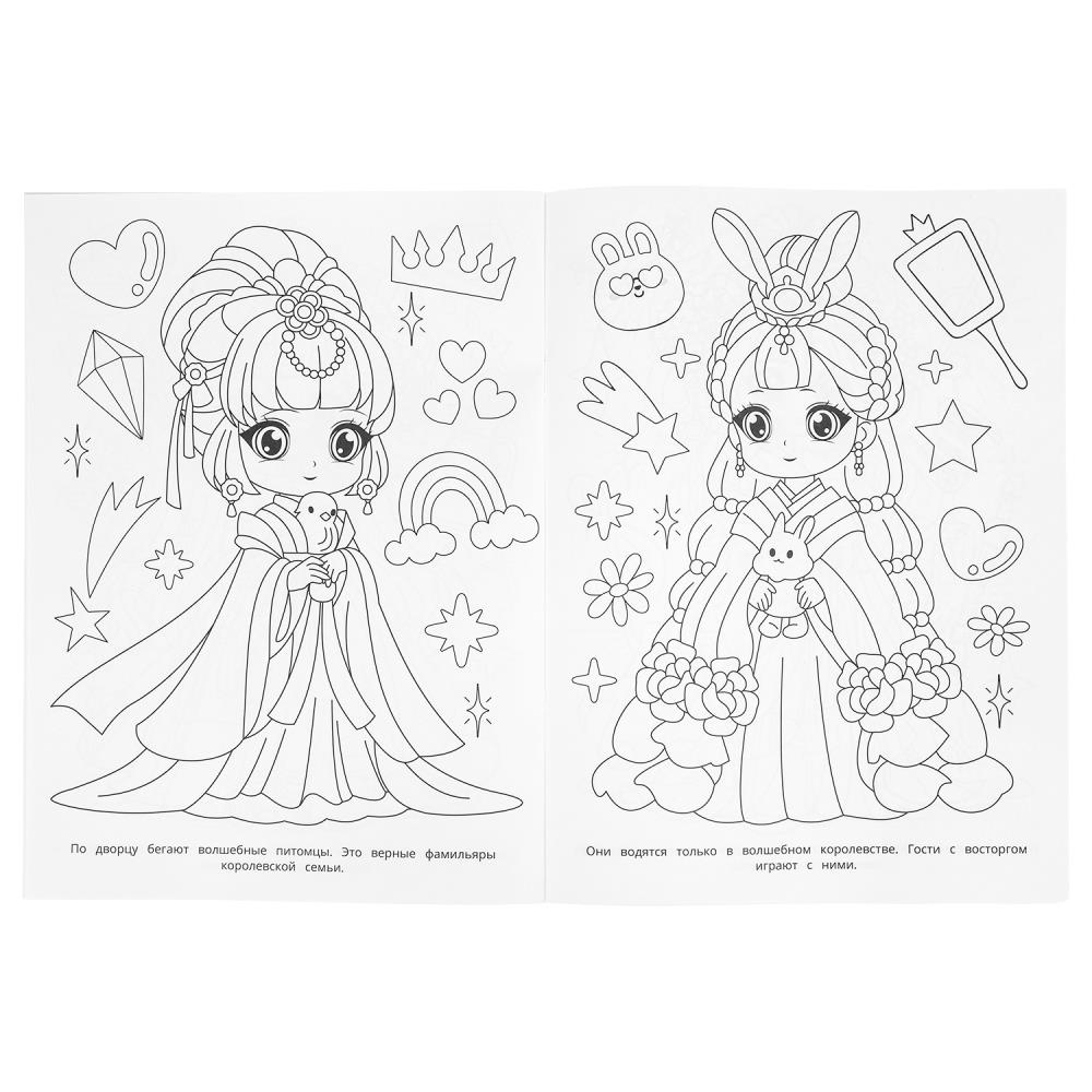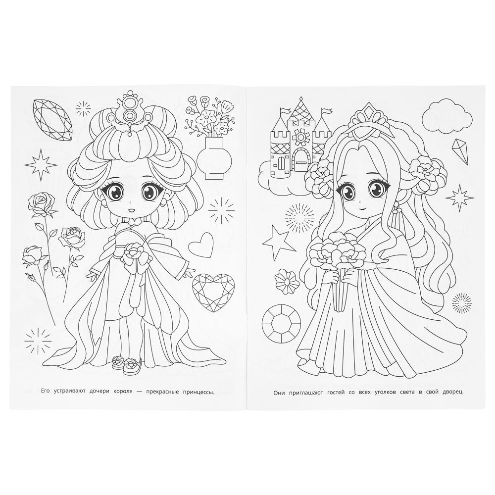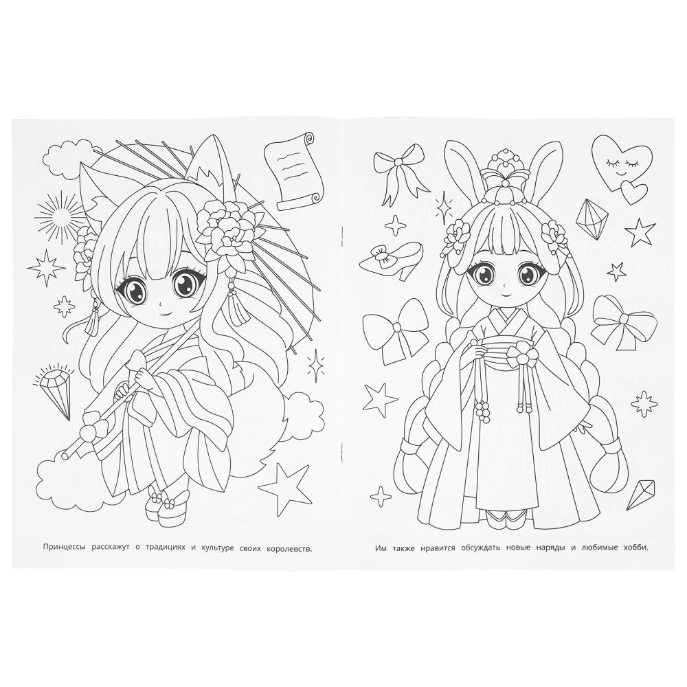 Эта увлекательная раскраска об очаровательных аниме-принцессах непременно понравится вашему ребёнку. В ней девочка найдёт интересные картинки с чёткими контурами и сюжетными текстами к ним. Благодаря удобному формату раскраску можно взять с собой в дорогу.
