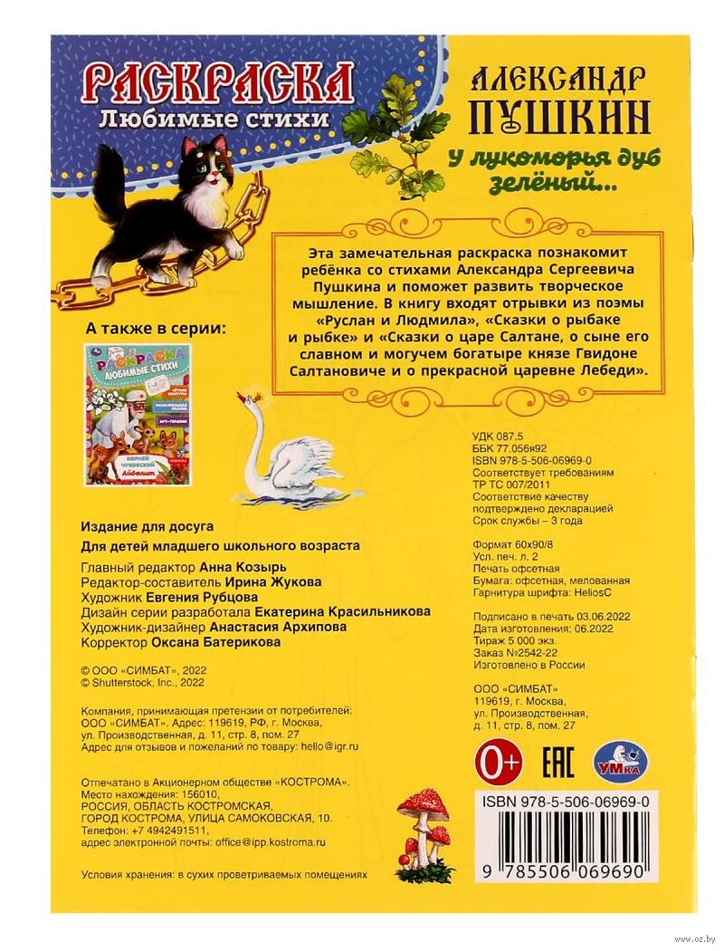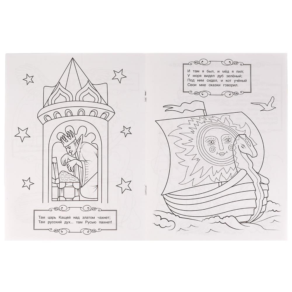 Эта замечательная раскраска познакомит ребёнка со стихами Александра Сергеевича Пушкина и поможет развить творческое мышление. В книгу входят отрывки из поэмы "Руслан и Людмила", а также фрагменты "Сказки о рыбаке и рыбке" и "Сказки о царе Салтане...".