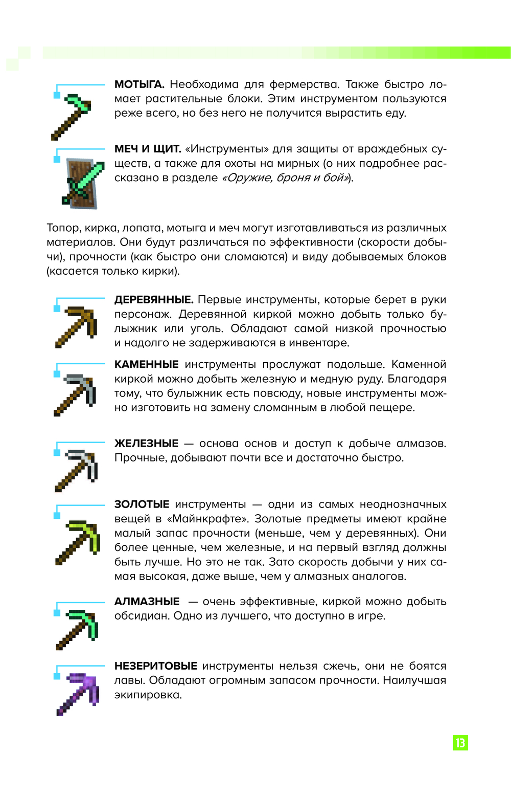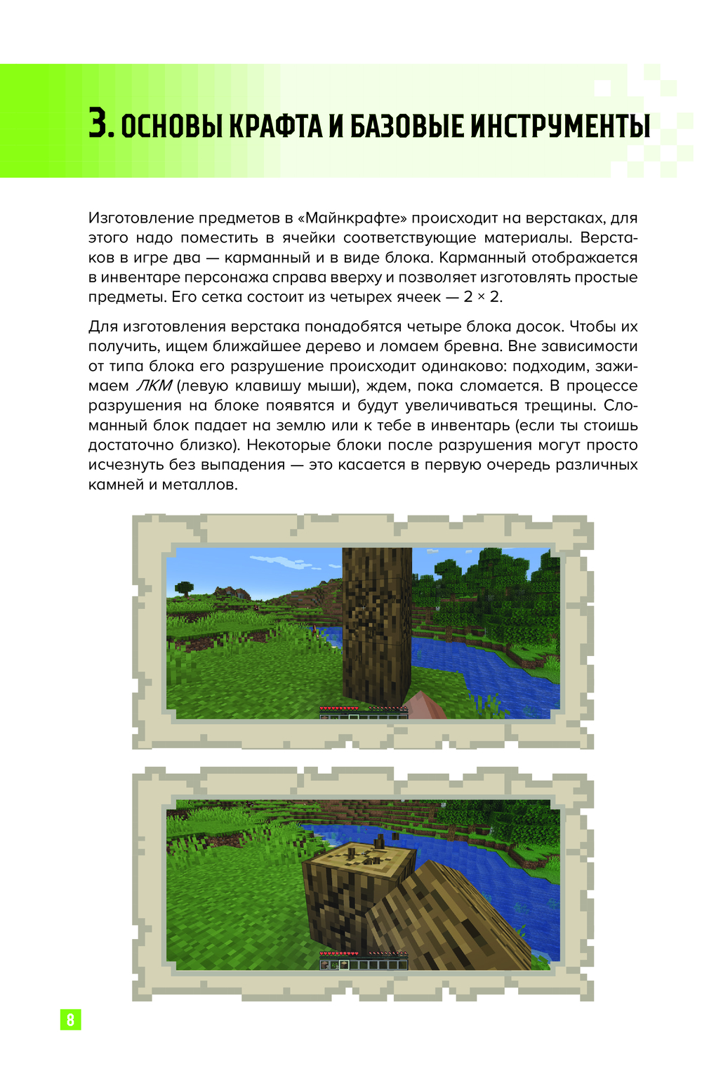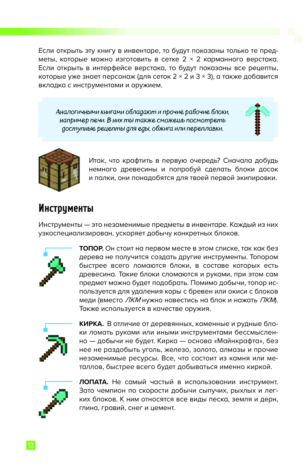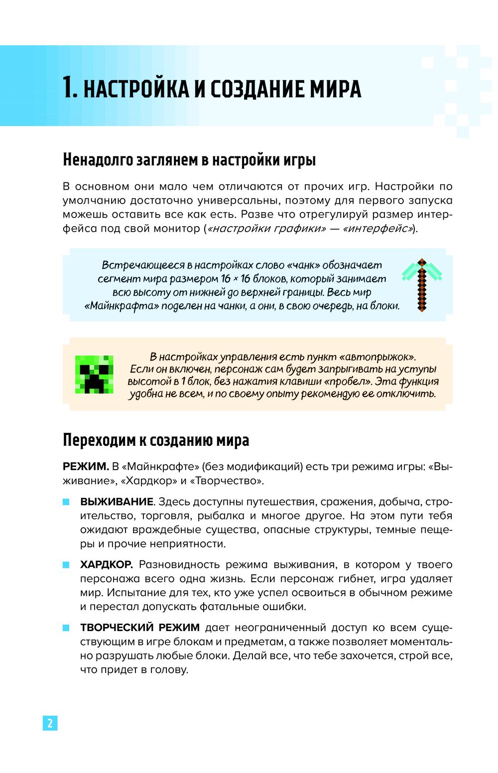 Cделать первый шаг навстречу неизвестности всегда непросто. Особенно, если это шаг в Бездну... Невероятная вселенная MINECRAFT полна опасностей и приключений, неизведанных уголков и главное – безграничных возможностей. С этим руководством ты легко освоишь навыки строительства, крафта, зачарований и всего, что пригодится в режиме выживания.