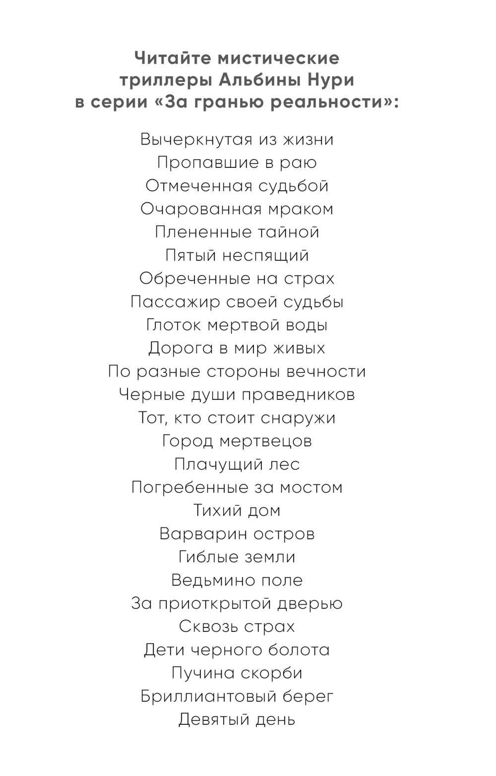 | Серия | За гранью реальности. Мистические триллеры Альбины Нури |