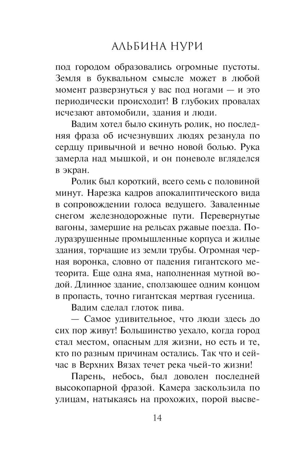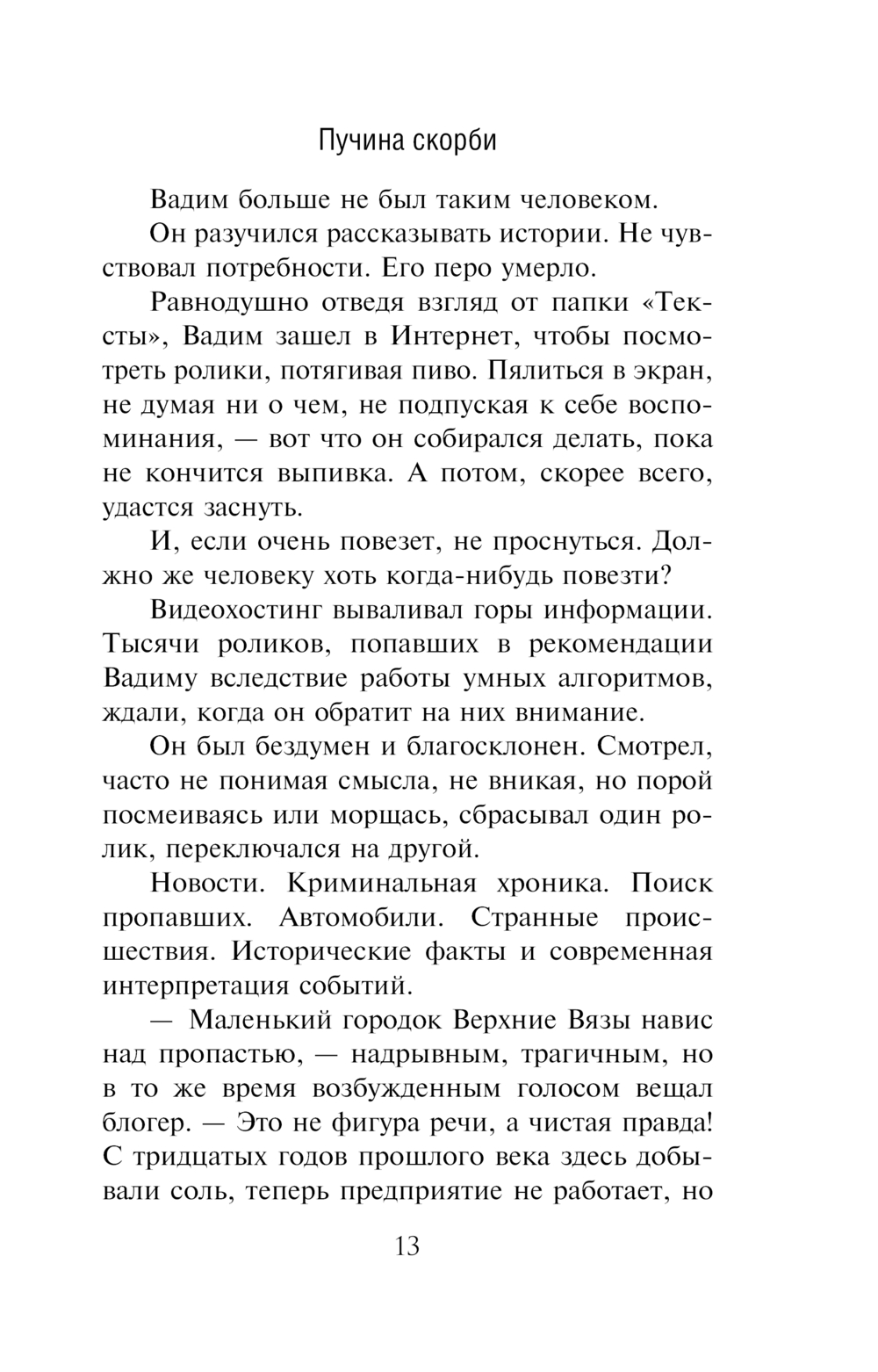 Блогер вел репортаж из богом забытого местечка Верхние Вязы. Когда-то там велась добыча соли, но потом на этом месте образовались огромные провалы, и городок стал медленно уходить под землю. Вадим попытался связаться с блогером, но узнал от его сестры, что парень тоже пропал. Тогда Каменев сам отправился в Верхние Вязы, не подозревая, что его там ждет...