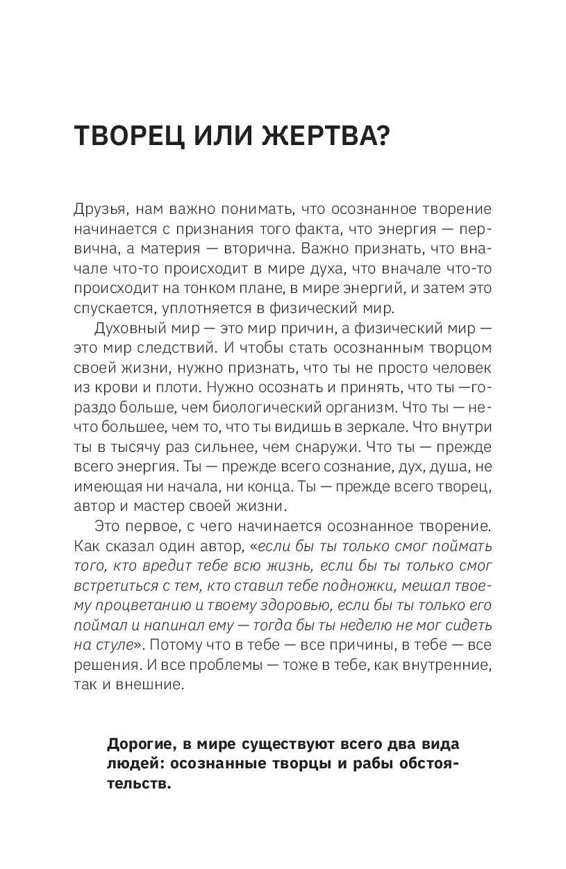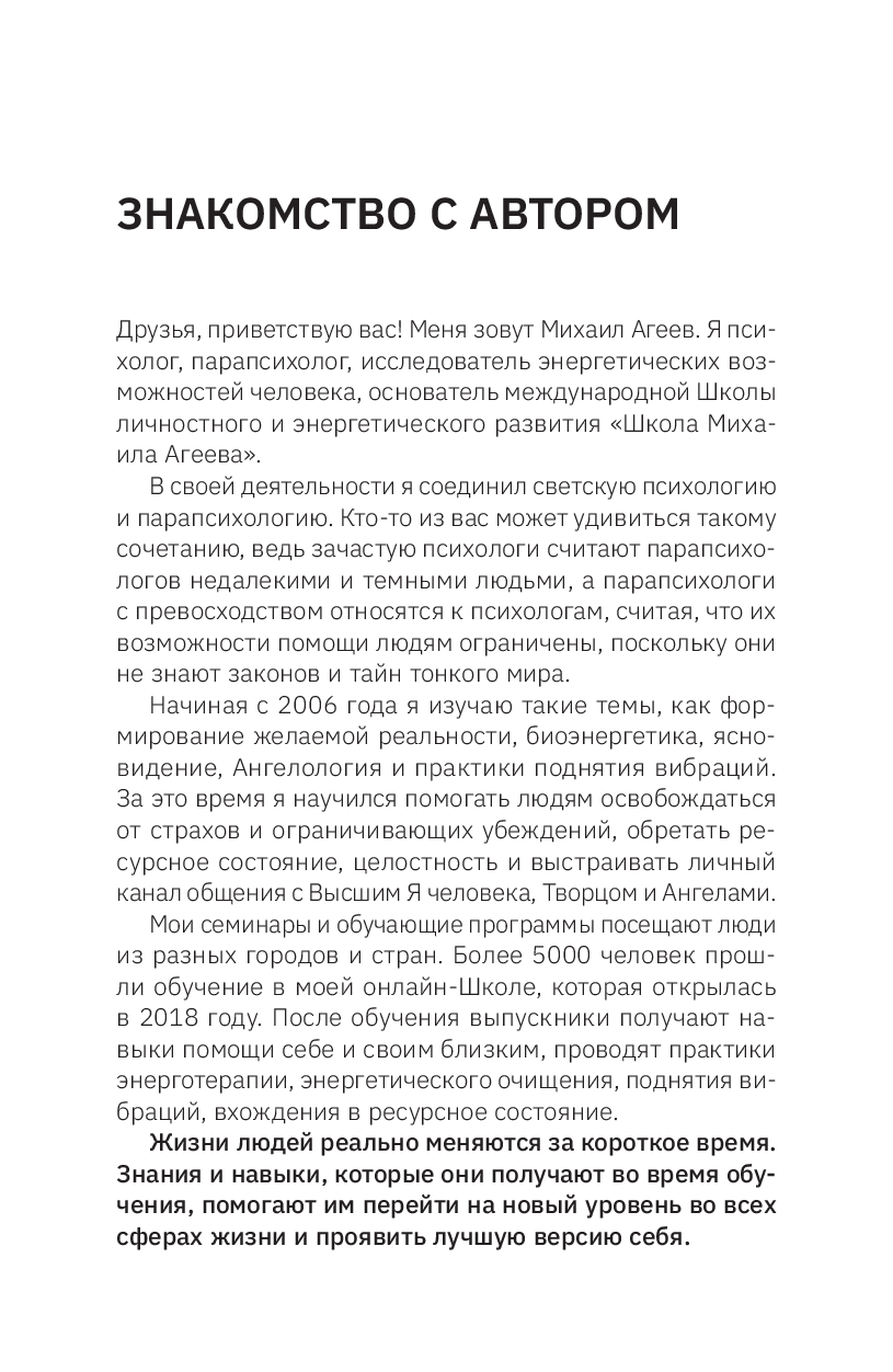 Но как стать творцом и достичь желаемого? Перед вами книга, которая поможет вам настроить разум на изменение жизни. Авторские практики и инструменты Михаила Агеева помогут вам начать создавать желаемое будущее уже сейчас! Вы узнаете, как воплощать мечты с помощью правильного мышления, как управлять вниманием и получать ресурс и энергию для грядущих изменений. Вы научитесь радоваться жизни и привлекать только позитивные события и людей. Вы также познакомитесь с историями людей, которые вдохновят вас на перемены.