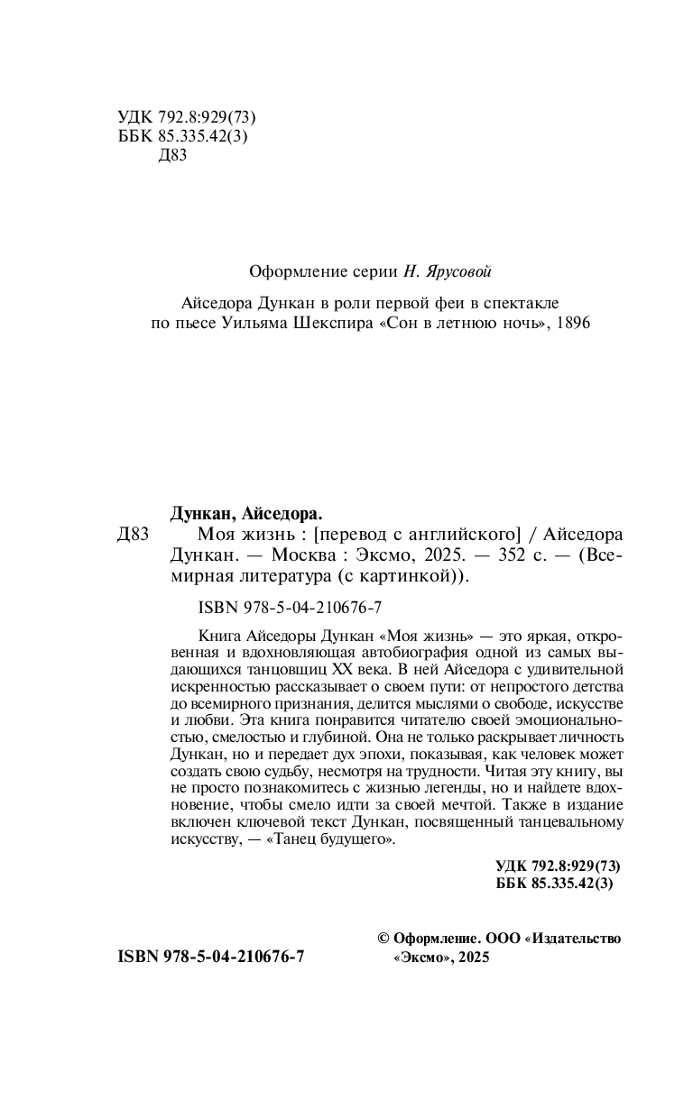 Эта книга понравится читателю своей эмоциональностью, смелостью и глубиной. Она не только раскрывает личность Дункан, но и передает дух эпохи, показывая, как человек может создать свою судьбу, несмотря на трудности. Читая эту книгу, вы не просто познакомитесь с жизнью легенды, но и найдете вдохновение, чтобы смело идти за своей мечтой.