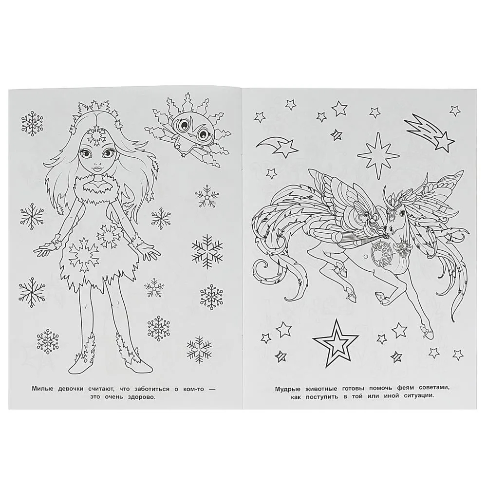 Эта занимательная раскраска с очаровательными космическими феями и их питомцами не только развлечёт девочку, но и поможет ей потренировать руку к письму. Благодаря удобному формату раскраску можно взять с собой в дорогу.