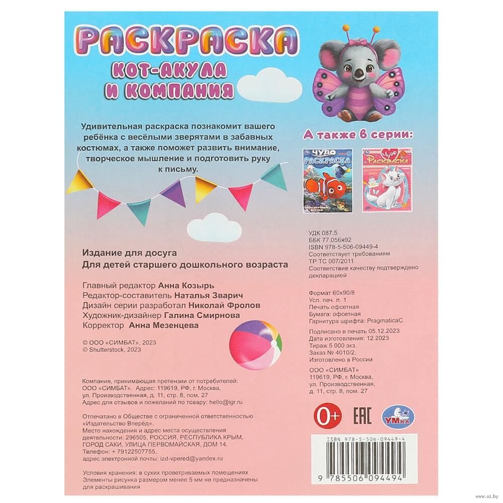 На каждой странице этой чудо-раскраски ребёнка ждёт встреча с милым котом-акулой и его друзьями. Раскрашивая их, маленький художник не только отлично проведёт время, но и разовьёт воображение, потренирует внимание и научится аккуратности. Благодаря удобному формату раскраску можно взять с собой в путешествие.