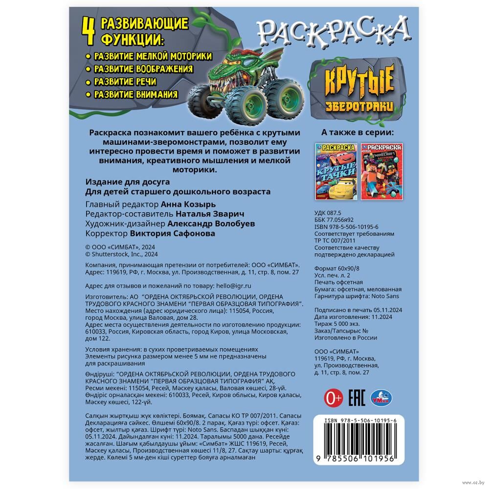 Эта увлекательная раскраска с оригинальными машинами непременно понравится мальчику. В ней он найдёт интересные картинки с чёткими контурами и сюжетными текстами к ним. Благодаря удобному формату раскраску можно взять с собой в дорогу.