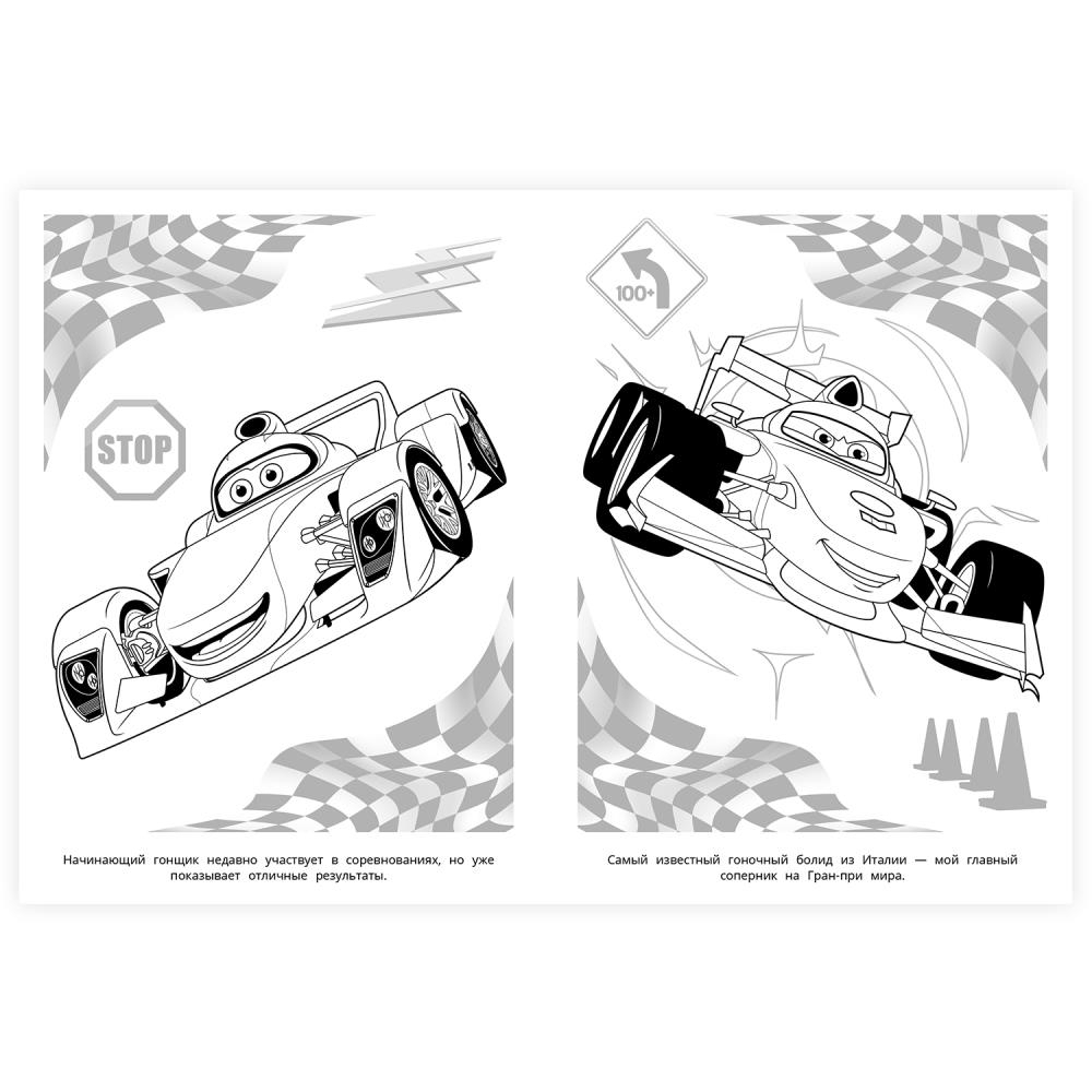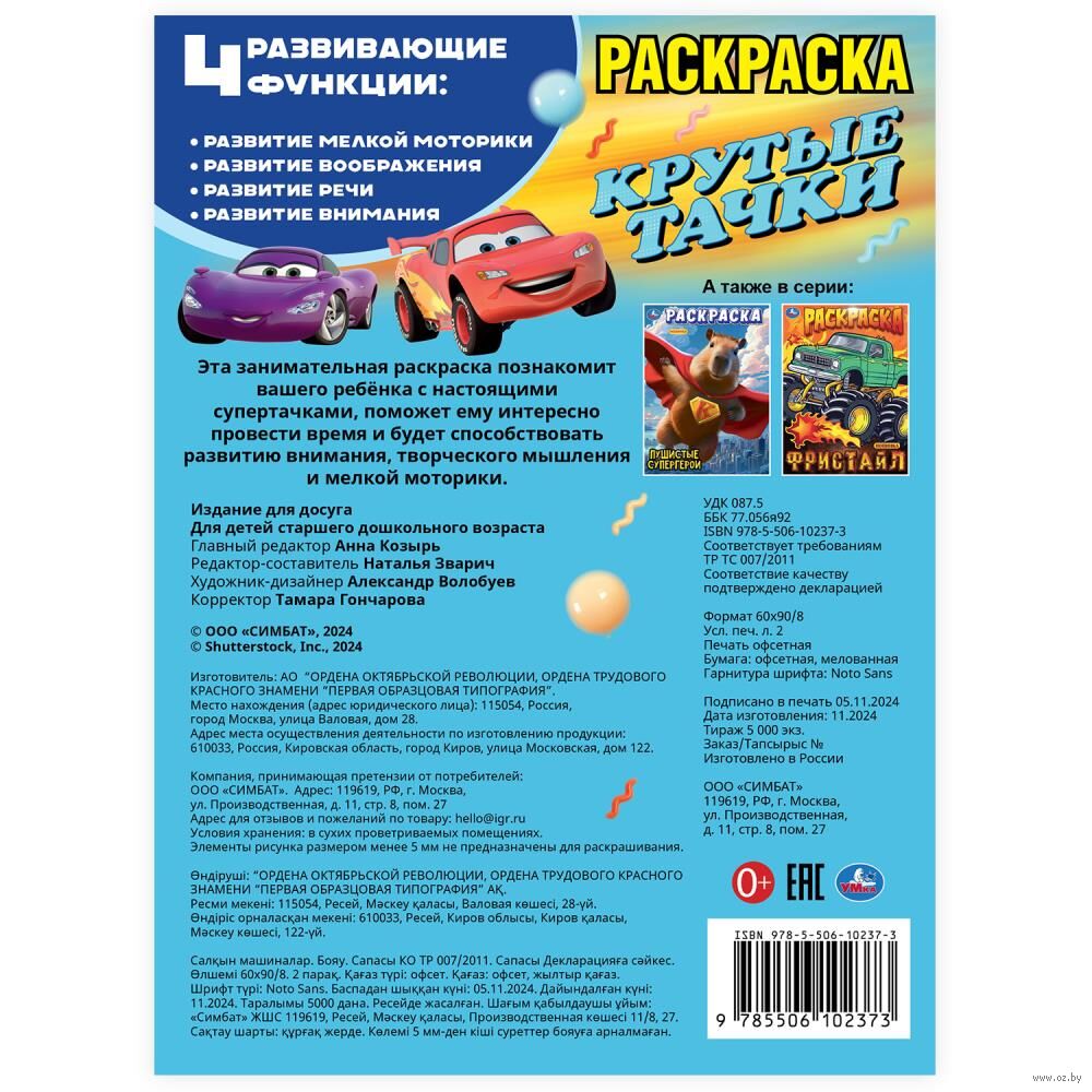 Эта увлекательная раскраска с весёлыми мультяшными машинками непременно понравится мальчику. В ней он найдёт интересные картинки с чёткими контурами и сюжетными текстами к ним. Благодаря удобному формату раскраску можно взять с собой в дорогу.