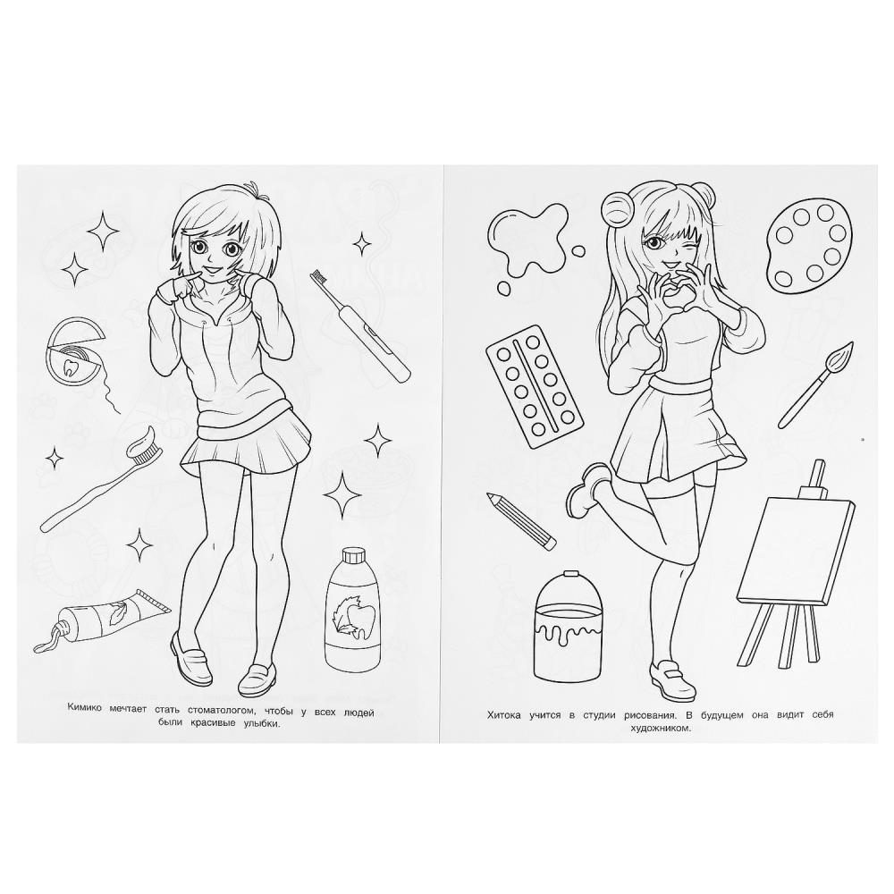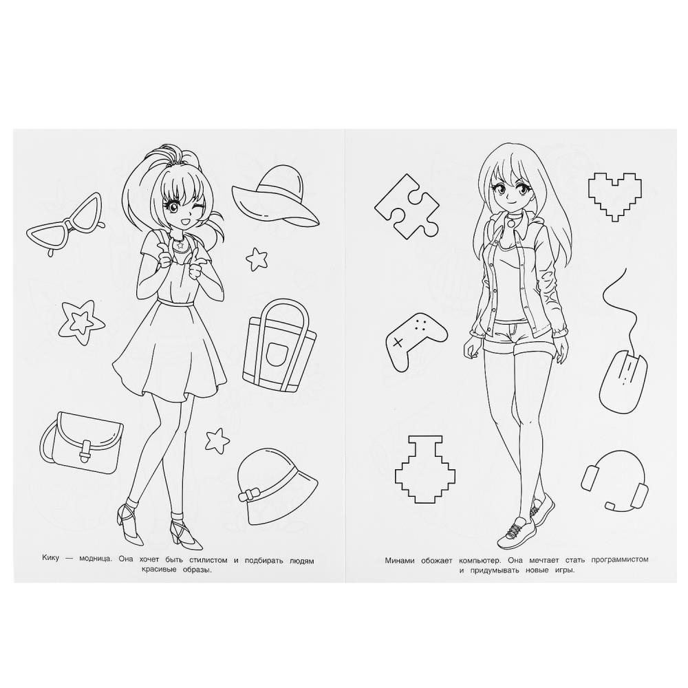 Эта увлекательная раскраска с милыми аниме-персонажами непременно понравится вашему ребёнку. В ней он найдёт интересные картинки с чёткими контурами и сюжетными текстами к ним. Благодаря удобному формату раскраску можно взять с собой в дорогу.