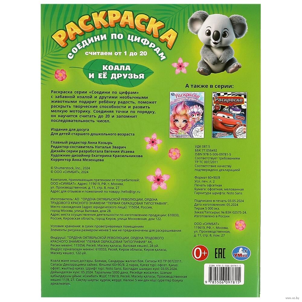 Коала и её друзья. Раскраска. Соедини по цифрам