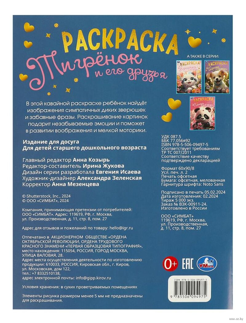В этой кавайной раскраске ребёнок найдёт изображения очаровательного тигрёнка и других милых животных, а также забавные фразы о них. Она подарит незабываемые эмоции и поможет развить воображение и мелкую моторику. Благодаря удобному формату раскраску можно взять с собой в путешествие.